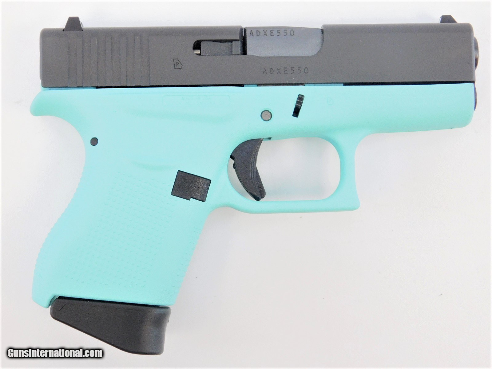 Description: BRAND NEW IN THE BOX AND READY TO SHIP! BUY IT NOW!! Manufacturer: Glock, Inc. Model: G43 USA SKU: UI4350201REB Caliber: 9mm Luger Capacity: (2) 6 Round Magazines Barrel Length: 3.39" Grip Frame: Robin's Egg Blue Polymer Slide Finish: Black Overall Length: 6.26" Weight: 17.95 oz Sights: Fixed The Glock 43 is our new single stack 9mm pistol. The G43 is the most highly desired and anticipated release in Glock's history. The G43 is the answer to your everyday concealed carry needs. It's ultra-concealable, accurate, and fantastic for all shooters regardless of hand size. The grip has a built in beaver-tail design which allows the shooter to acquire a high and tight grip. The aggressive texture of the grip lets the shooter more easily operate the pistol. The large magazine catch allows for easy removal of the six round magazine. Engineered to the same standards, the G43 can withstand the same tortures as other Glock pistols. KNOW YOUR LOCAL AND STATE LAWS!! ORDERS WILL ONLY BE ACCEPTED FROM US RESIDENTS OF THE LOWER 48 STATES, ALASKA AND HAWAII. OUR FFL CLASS DOES NOT ALLOW FOR THE EXPORT OF FIREARMS, THEREFORE WE CANNOT SHIP OUT OF THE US. IF YOU ARE INTERESTED IN PURCHASING THIS ITEM, PLEASE COMPLETE YOUR ORDER BY REFERRING TO THE "SELLER'S INFORMATION" ABOVE. SOLD |