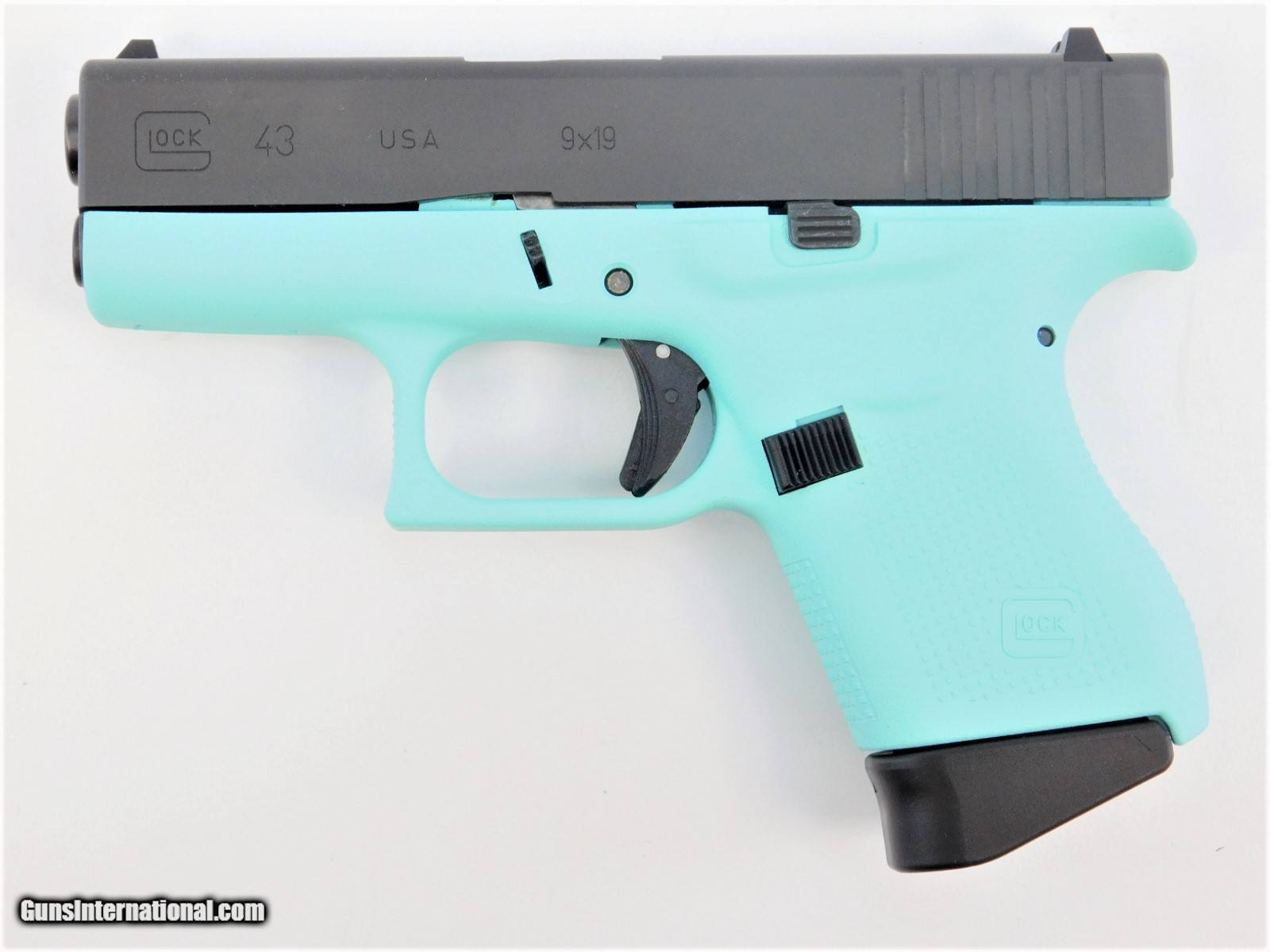 Glock G43 USA 9mm Luger 3.39" Robins Egg Blue / Black UI4350201REB