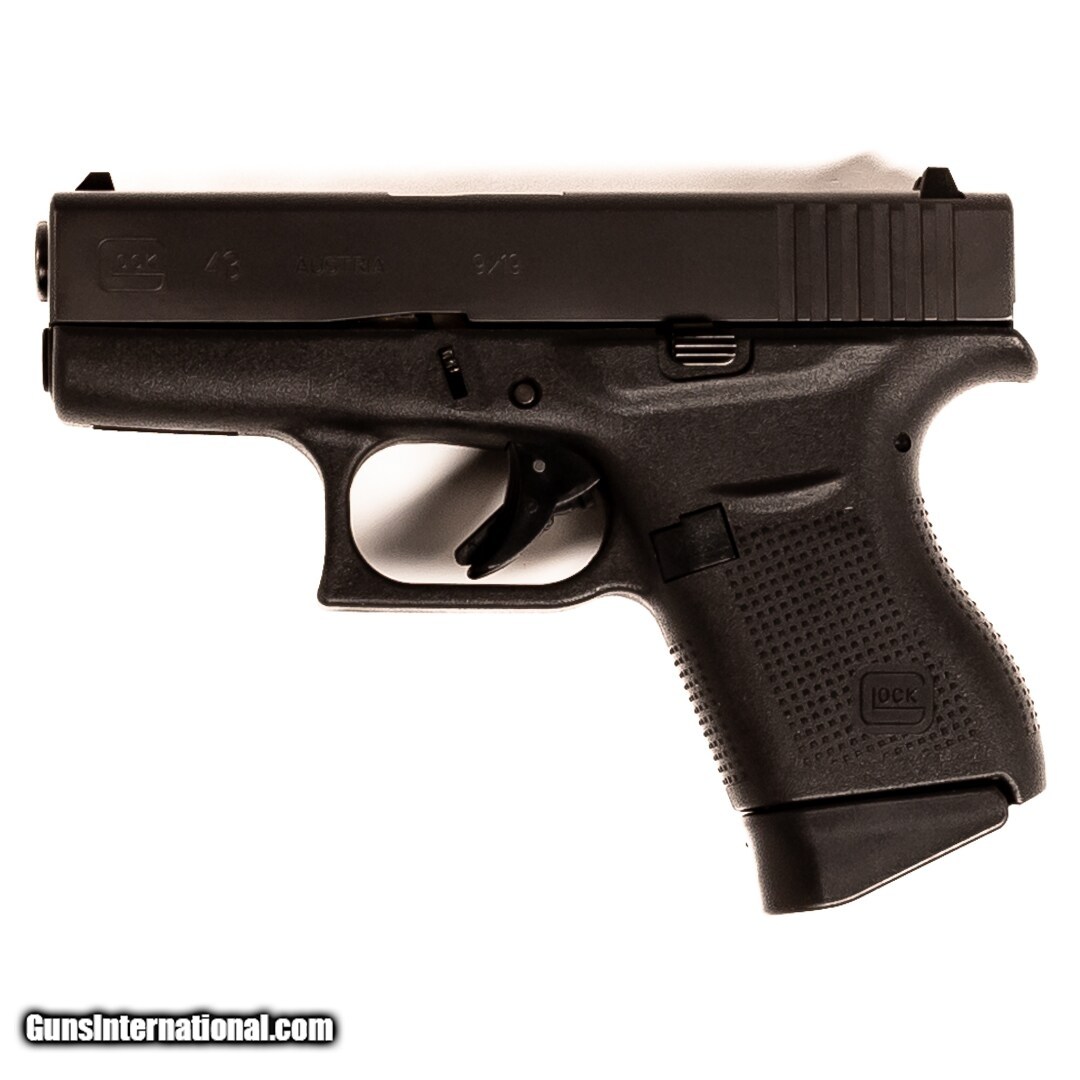 Description: Guns Listing ID: 744944 The Glock 43 is an award-winning single-stack handgun known for its ease of concealment, accuracy, and reliability. It‚‚s an excellent option for daily carry or a deeply concealed backup for law enforcement agents, defense contractors, and security guards. This G43 has a left-handed mag release. Purchase includes the original case, two 6-round magazines, and an uninstalled slide charging handle. Get the best bang for your buck when you get a Certified Used Firearm . When you see the Certified Used stamp on any of our firearms, you can be confident that you’re getting exactly what you want – a gun only in very good to excellent condition and held to the highest quality standard. All Certified Used Guns come with a ‘no questions asked’ return policy . PLUS, ALL CERTIFIED USED GUNS SHIP FREE SOLD Manufacturer: GLOCK Model: G43 Caliber Info: 9MM LUGER (9X19 PARA) Condition: Used - Certified Barrels: 3.4 BARREL Finish: BLACK |