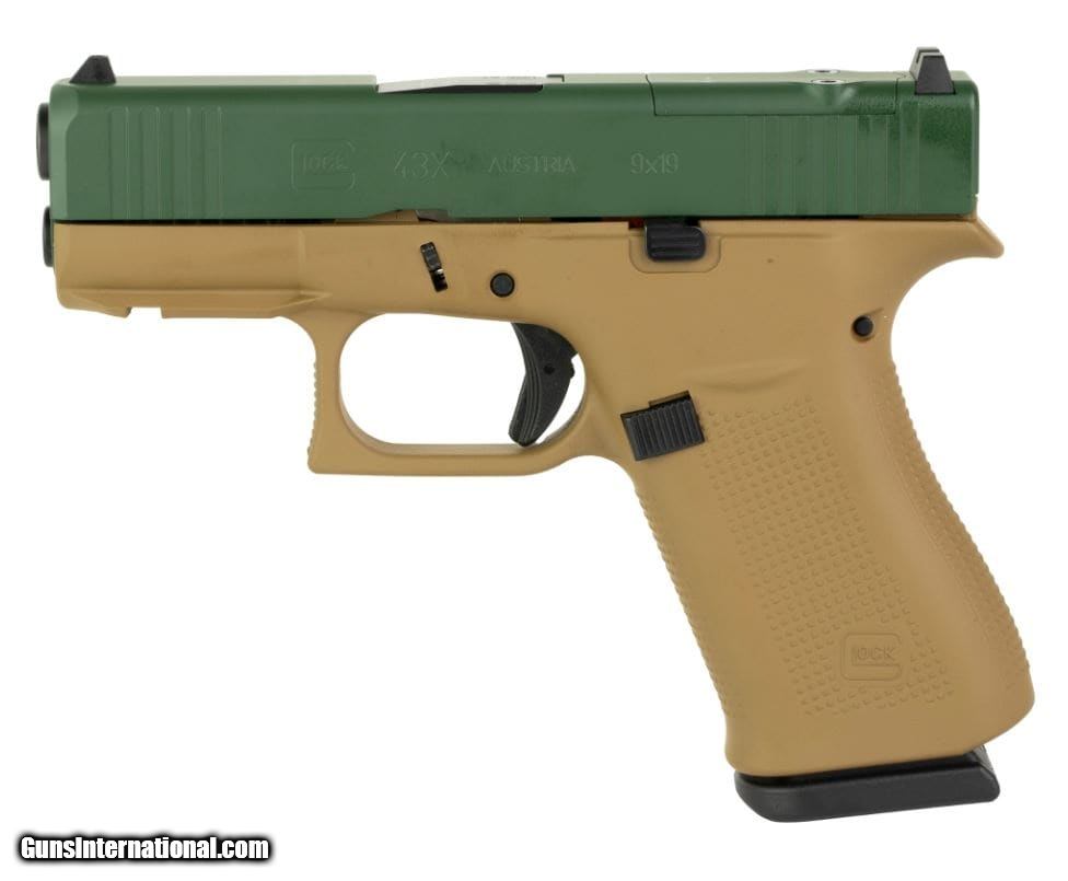 Description: Guns Listing ID: prod287034 Designed for comfort, The G43X MOS combines a compact-size grip length, a built-in beaver tail and a subcompact-slim slide for a comfortably balanced, versatile grip that‚‚s ideal for a varie SOLD Manufacturer: GLOCK Model: G43X Caliber Info: 9MM LUGER (9X19 PARA) Condition: new Barrels: 3.41 BARREL Finish: COYOTE TAN |