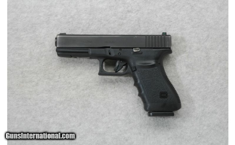 Description: Gen 3 SOLD Caliber Info: .45 A.C.P. Chambers: 13 shot magazine. Metal Condition: Good with black wear. Bore Condition: Very good. Barrels: 4.5 inches Stock: Textured black polymer. Weight: 30 oz. Sights: Blade front. Notch rear. 3 dot night sight. Item Location: Richfield, WI |