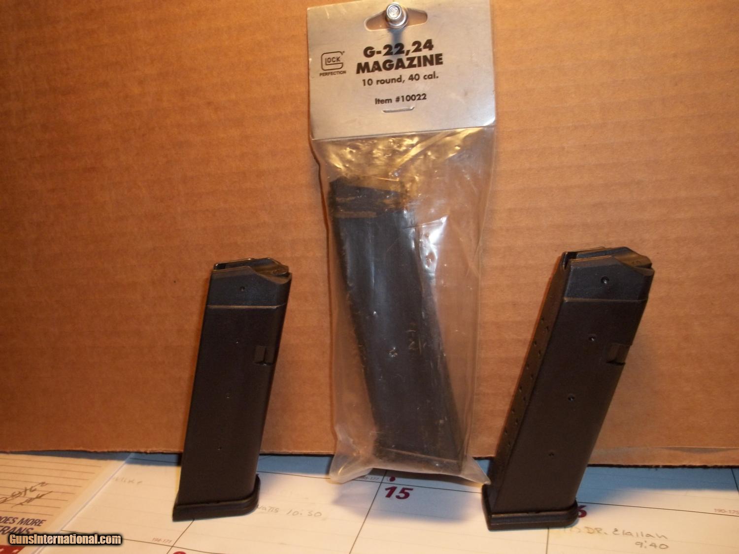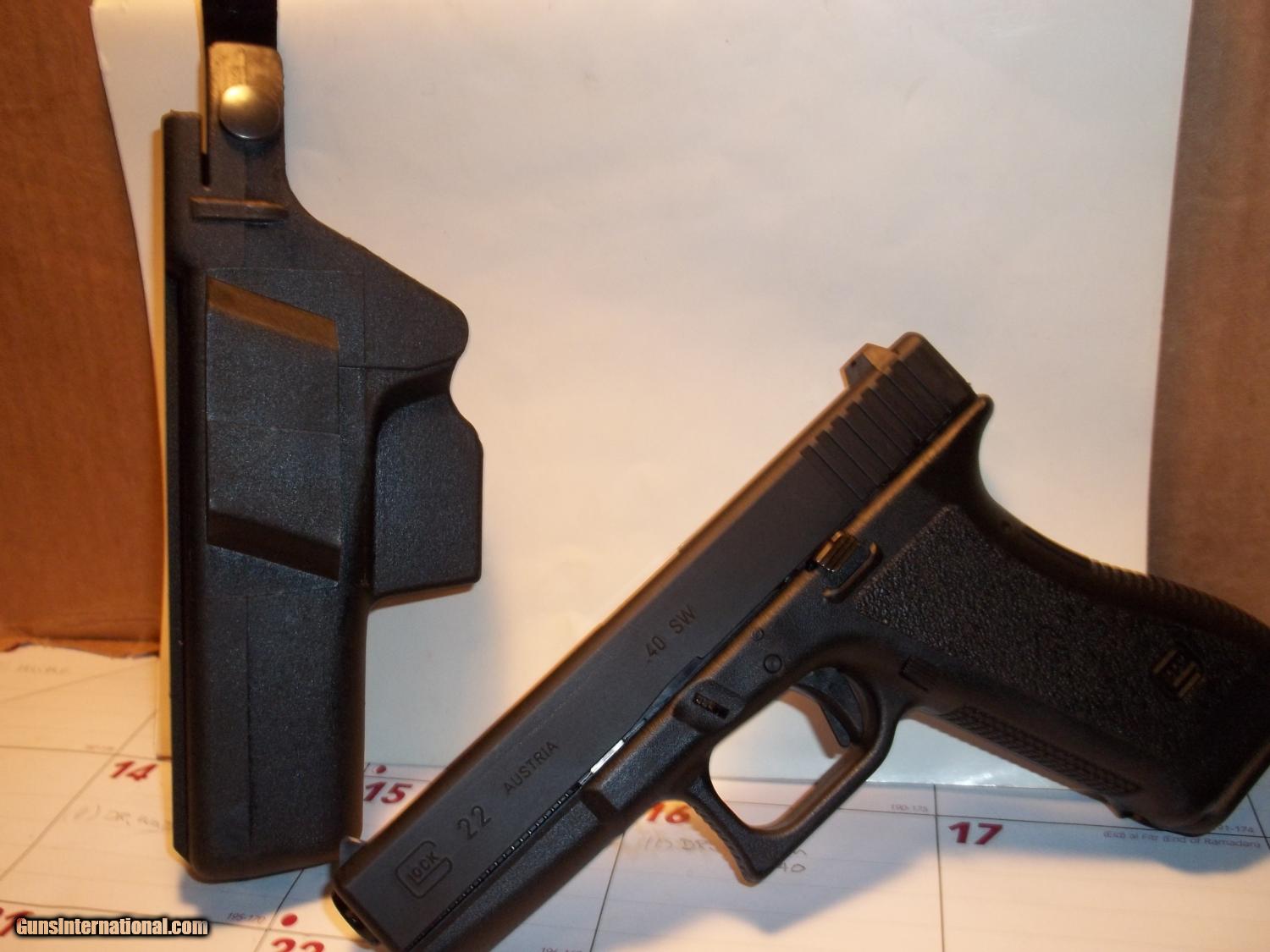 Description: Glock..Model 22 .40 S&W Gen 2...4 1/4" Barrel...Matte Black Finish...Polymer Grips...Excellent Condition..With a Glock Factory Sport/Duty Holster, Manual, and three extra magazines, one 10rd, two 14rd. Personal Check or Money Order...Layaway Available....Shipping $ 25.00 SOLD |
