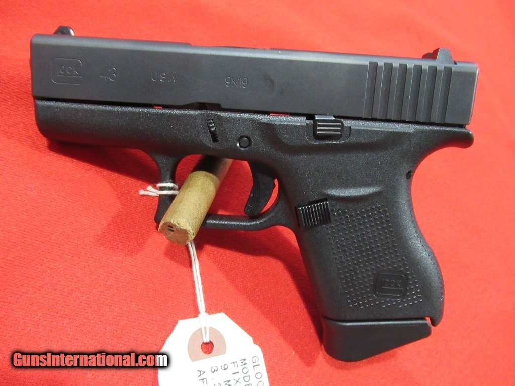 Description: Glock Model 43 is their most compact offering and is chambered in 9MM: 2-6 round single stack magazine, white outline rear sight with a white dot front sight, and factory case. An excellent little carry piece with Glock's patented reliability. SOLD |