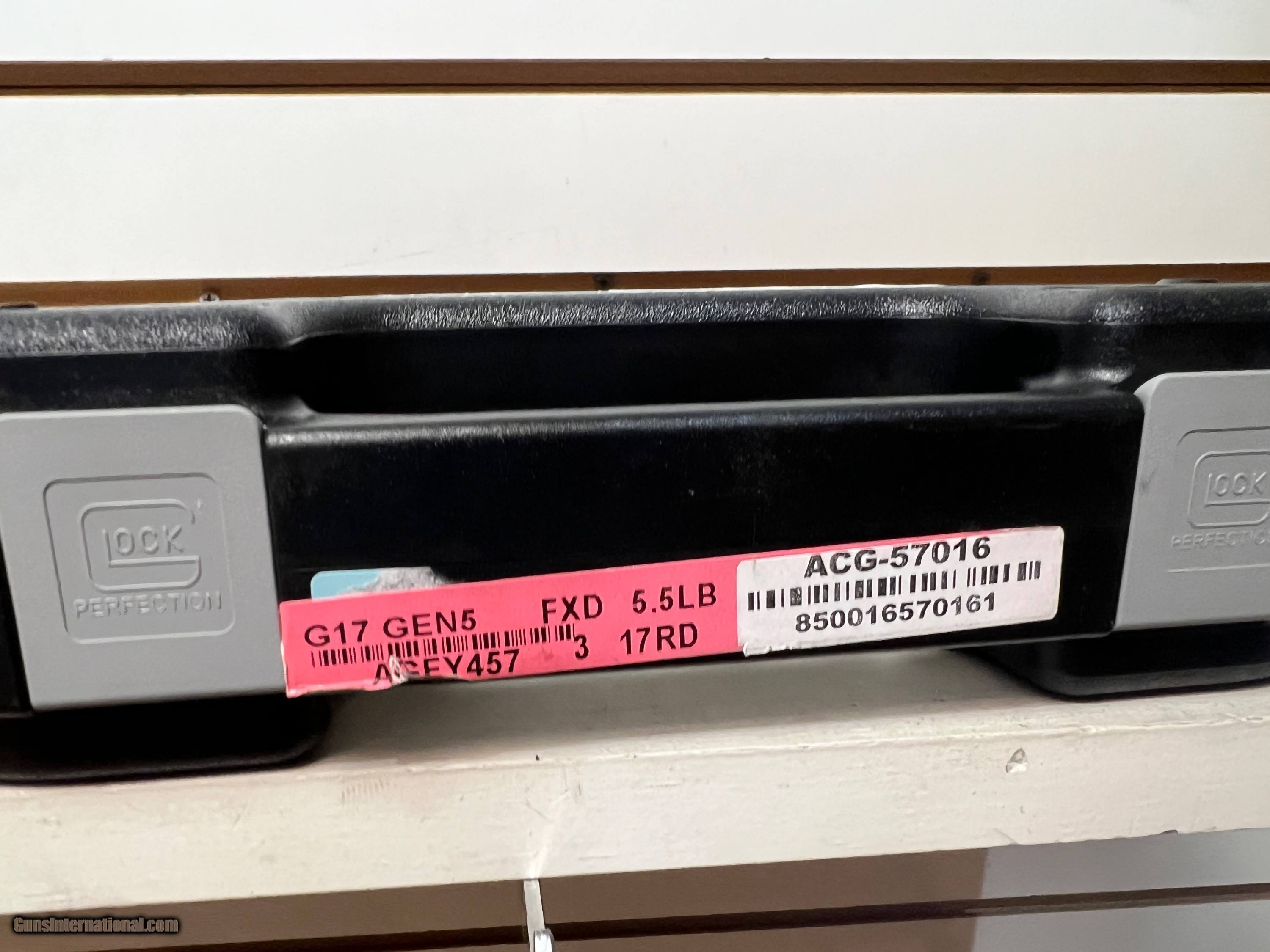 Description: NEW GLK 17G5 17RD CONGRY BLK 9mm (CALIBER:9MM);(MAG CAPACITY:LUGER);(GUN TYPE:PISTOL: SEMI-AUTO);(MODEL SERIES:17);(ACTION:SAFE ACTION);(CAPACITY:17+1);(FINISH:CERAKOTE BLACK);(STOCK:CERAKOTE CONCRETE GRAY);(SIGHTS:FT: WHITE DOT RR: WHITE OUTLINE);(BARREL LENGTH:4.49);(OVERALL LENGTH:7.32);(FEATURES:APOLLO CUSTOM EDITION);(DEPT:HANDGUN) Buyer pays shipping Millers Gun Center Located in New Castle, Delaware "Home of TAX-Free shopping" No Credit Card Fees Send Gun international inquiry and then call 302-328-9747 to complete your purchase SOLD Handgun Caliber: 9x19mm Parabellum (9mm Luger, 9x19mm NATO) Manufacturer: Glock Model: 17 Serial Number: AGFY457 |