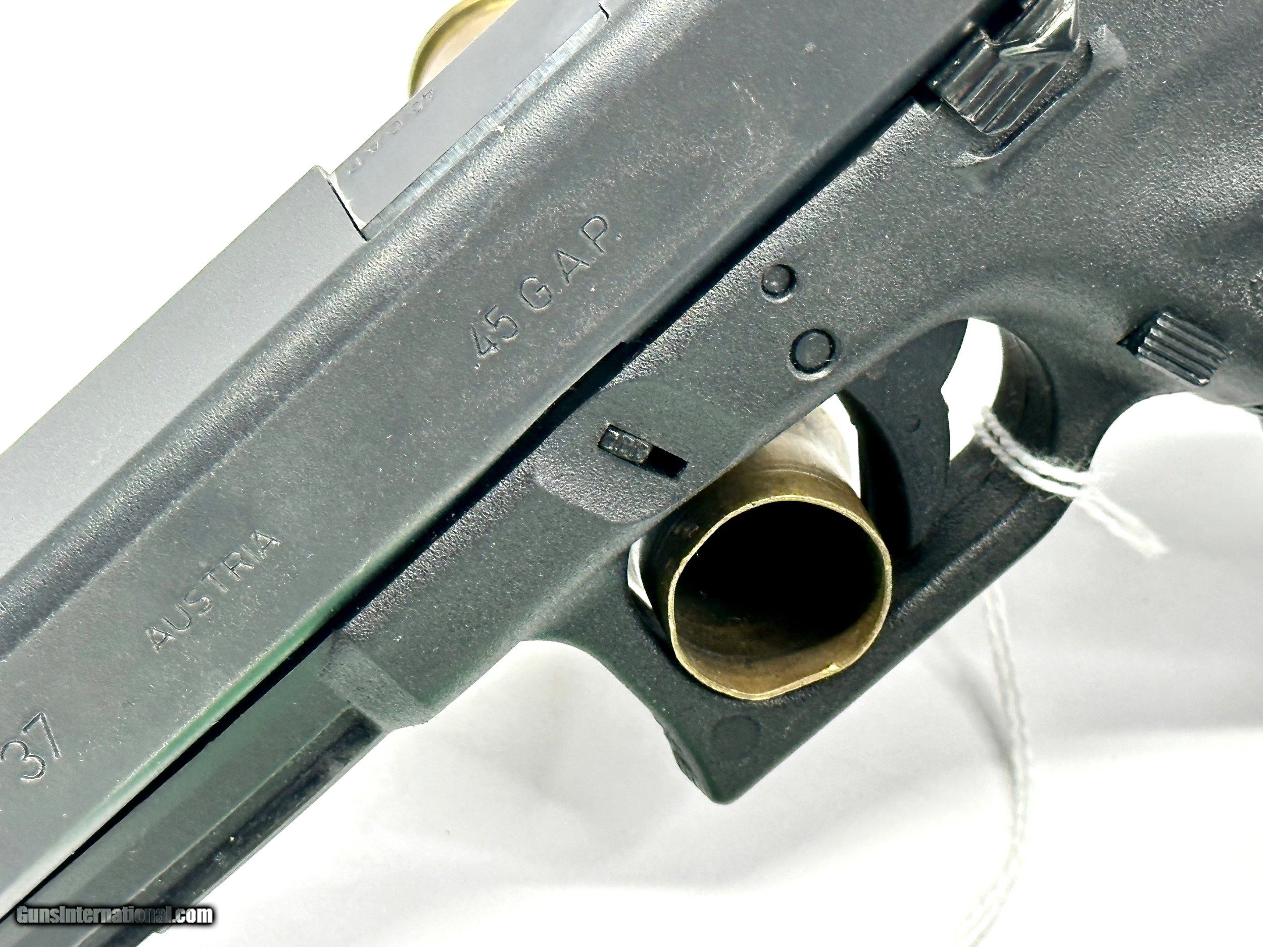 Description: Priced to move this Glock police trade in comes with 3ea 10 rd magazines. has a small piece worn off from cary / usage at the magazine well. Flat Rate shipping 35.00 Price reflects a 3.5% Cash discount Maine residents add 5.5% sales Tax SOLD Handgun Caliber: .45 GAP Manufacturer: Glock Model: G37 Serial Number: LAB810 Barrel Length: 4-1/2 Condition: Used Good mechanical Condition Metal Condition: Used Good mechanical Condition Wood Condition: Used Good mechanical Condition Bore Condition: Used Good mechanical Condition Action: Double action Item Location: Buxton Maine |