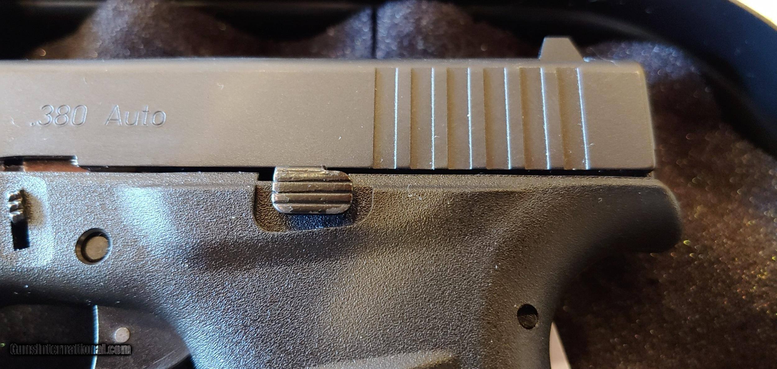 Description: Used Glock Model 42 380 Auto 1 factory mag 1 aftermarket mag Original Case Cleaning Brush Buyer Pays Shipping SOLD Serial Number: ACWK816 |