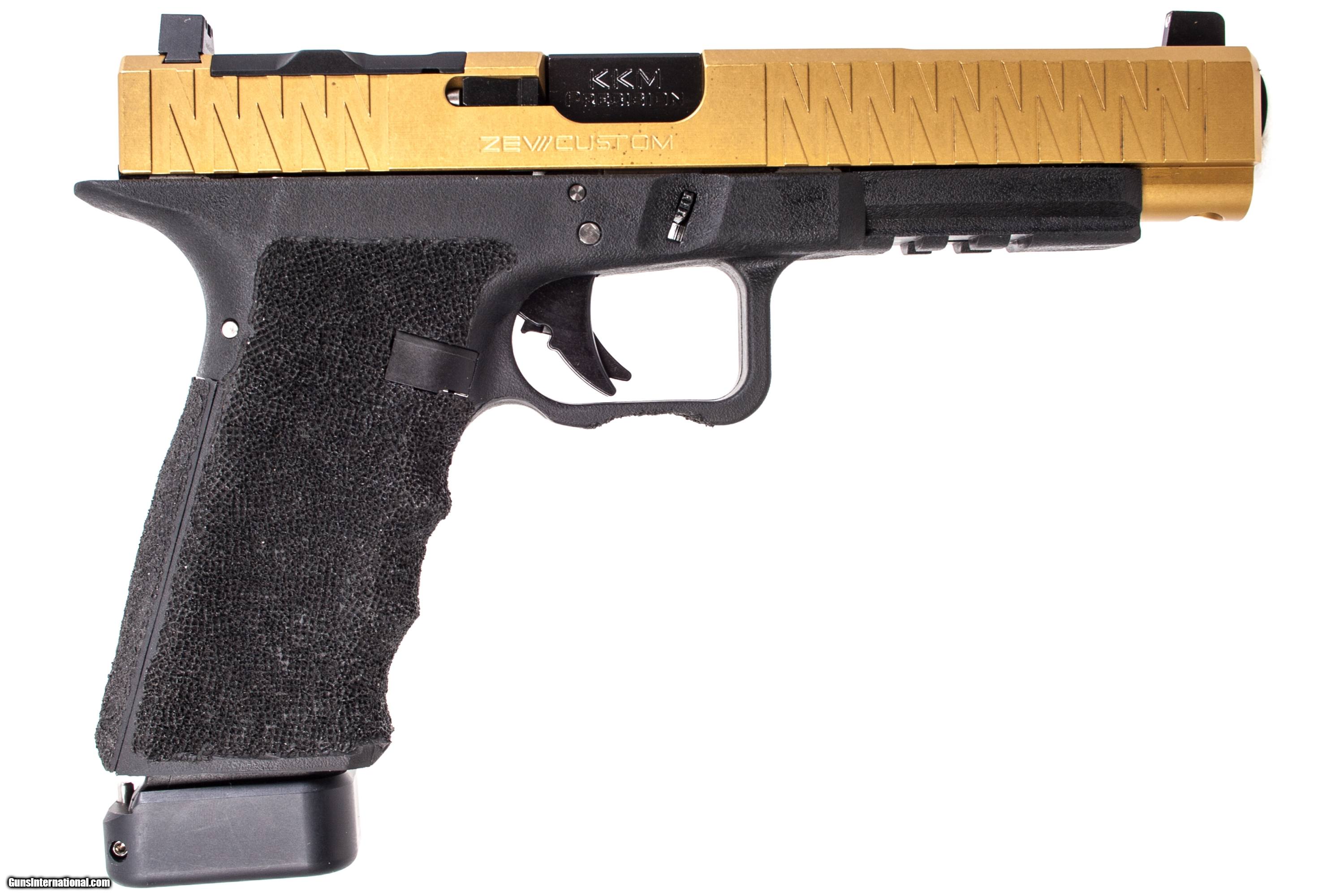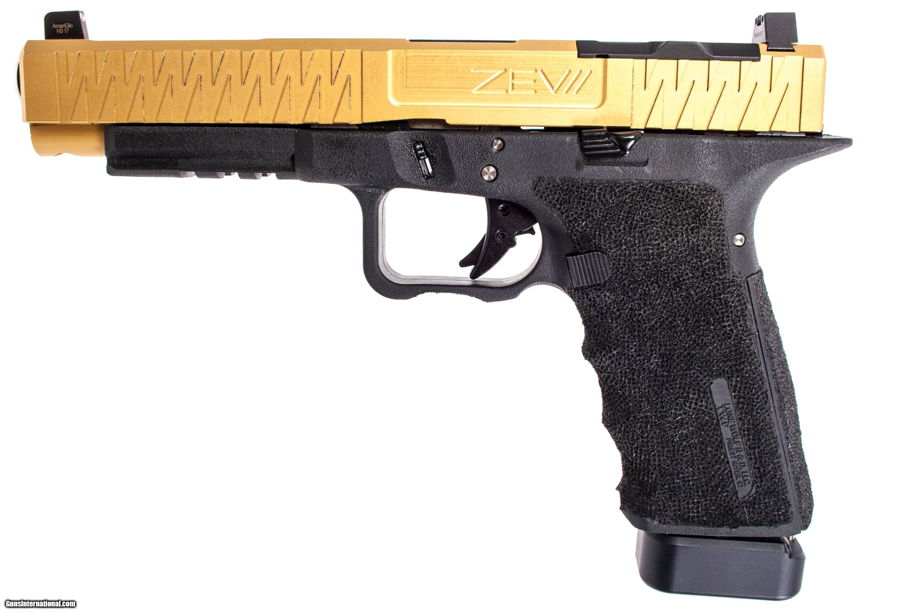 Zevii Glock model 34 chambered in 9 mm with a 5 inch barrel case 2 extra magazines KKM barrel extra glock barrel Zev trigger and a Lone Wolf frame. This gun is in excellent condition and is covered by Dury's Lifetime Warranty.