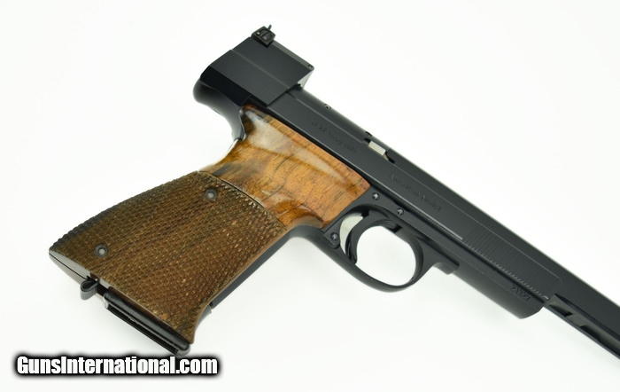 Description: Hammerli American .22 LR caliber pistol. Swiss Made Target model with 6 7/8” barrel, compensator and oversize target grip in excellent condition. SOLD |