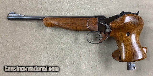 Description: An excellent original condition Hammerli Free Pistol in .22 caliber. Photos show all. Bore is excellent. I'm told this particular model is quite difficult to find. No model number shown on the pistol - only the number 1322 on the tapered octagon barrel and we assume this is a serial number and not a model number? We are extremely impressed by the quality of workmanship on this free pistol - a real "Work of Art" in our opinion - with some of the finest machining and finishing we have seen on a pistol - PERIOD! SOLD Curio/Relic: Yes Handgun Caliber: .22 Long Rifle |
