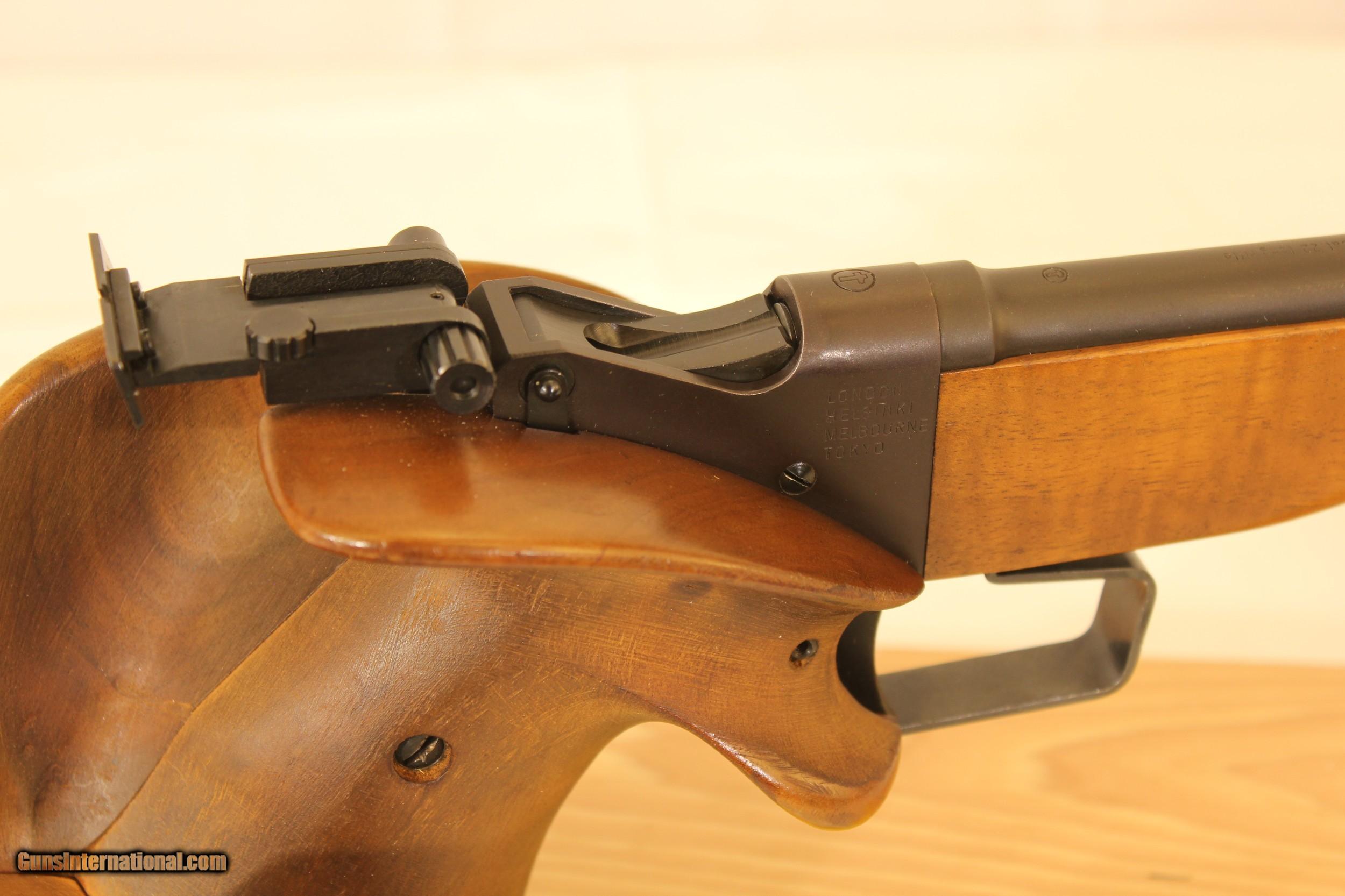 Description: This is the ultimate pistol for target shooters. This gun has an adjustable set trigger that can be set in ounces. It has a bright shinny bore. Fully adjustable sighs and the rear sit can be changed from square ti "V" pattern. It ha a 11 3/8 inch barrel and the sight radious is 14 1/2 inches. The grip is adjustable and you put this gun on to shoot it. It is also in very good condition. The lever on the left side is for setting the trigger and the action is opened via the lever on the bottom of the grip. It has a Peabody-Martini style action. $25.00 shipping via Priority Mail. C&R OK SOLD Curio/Relic: Yes |
