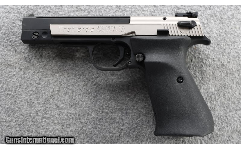 Description: The SIG Trailside is an entry level target pistol that boasts Swiss precision manufacturing and superb accuracy with standard velocity ammunition. .22 Long Rifle SOLD Chambers: .22 Long Rifle in a ten round detachable magazine semiautomatic pistol Metal Condition: Very good Wood Condition: Polymer grips are very good Bore Condition: Bright and crisp Barrels: 4.5 Triggers: Single action Weight: 30 Oz. Sights: "Fixed front, Micro adjustable leaf rear Item Location: Grand Junction, CO |