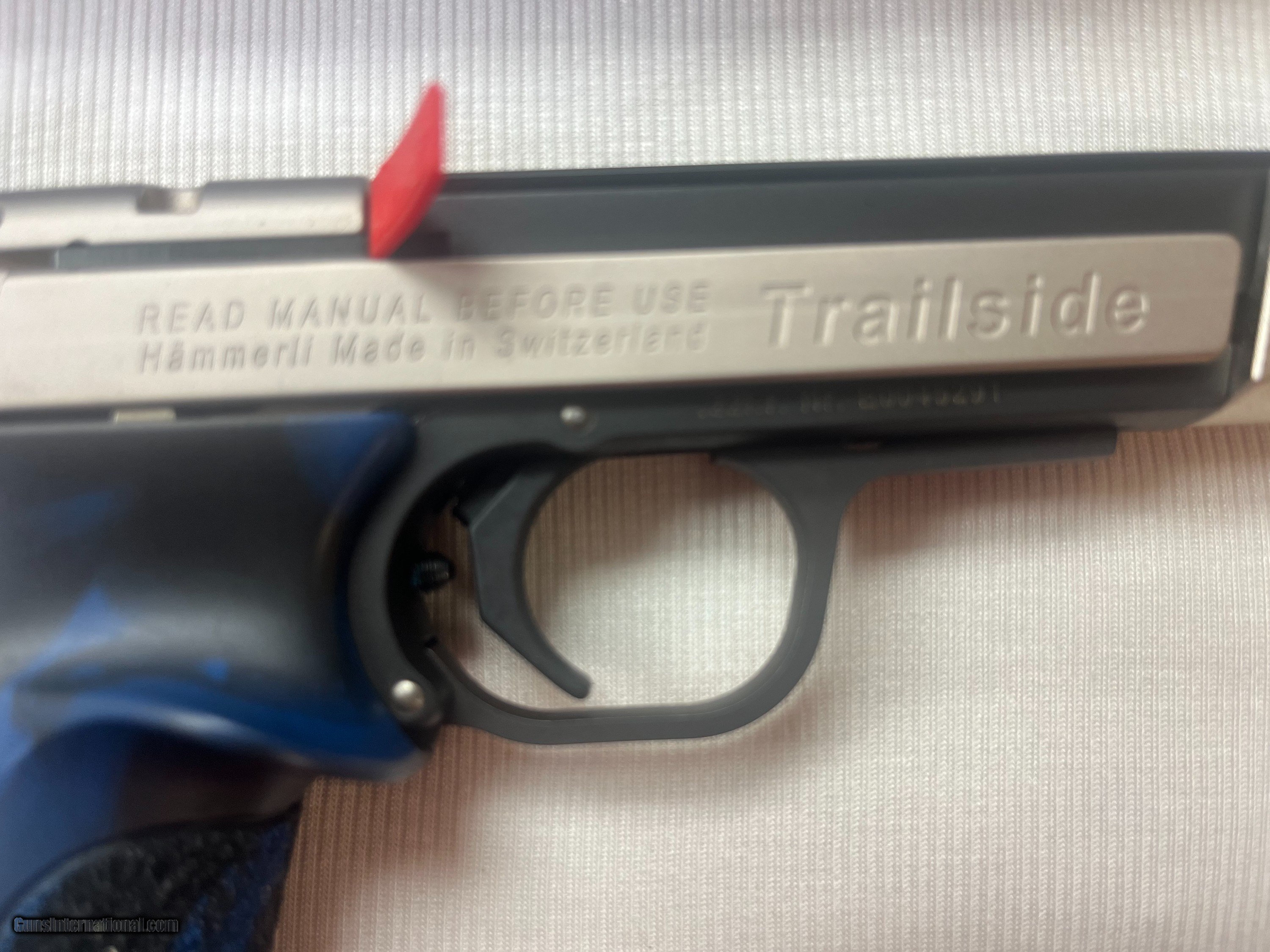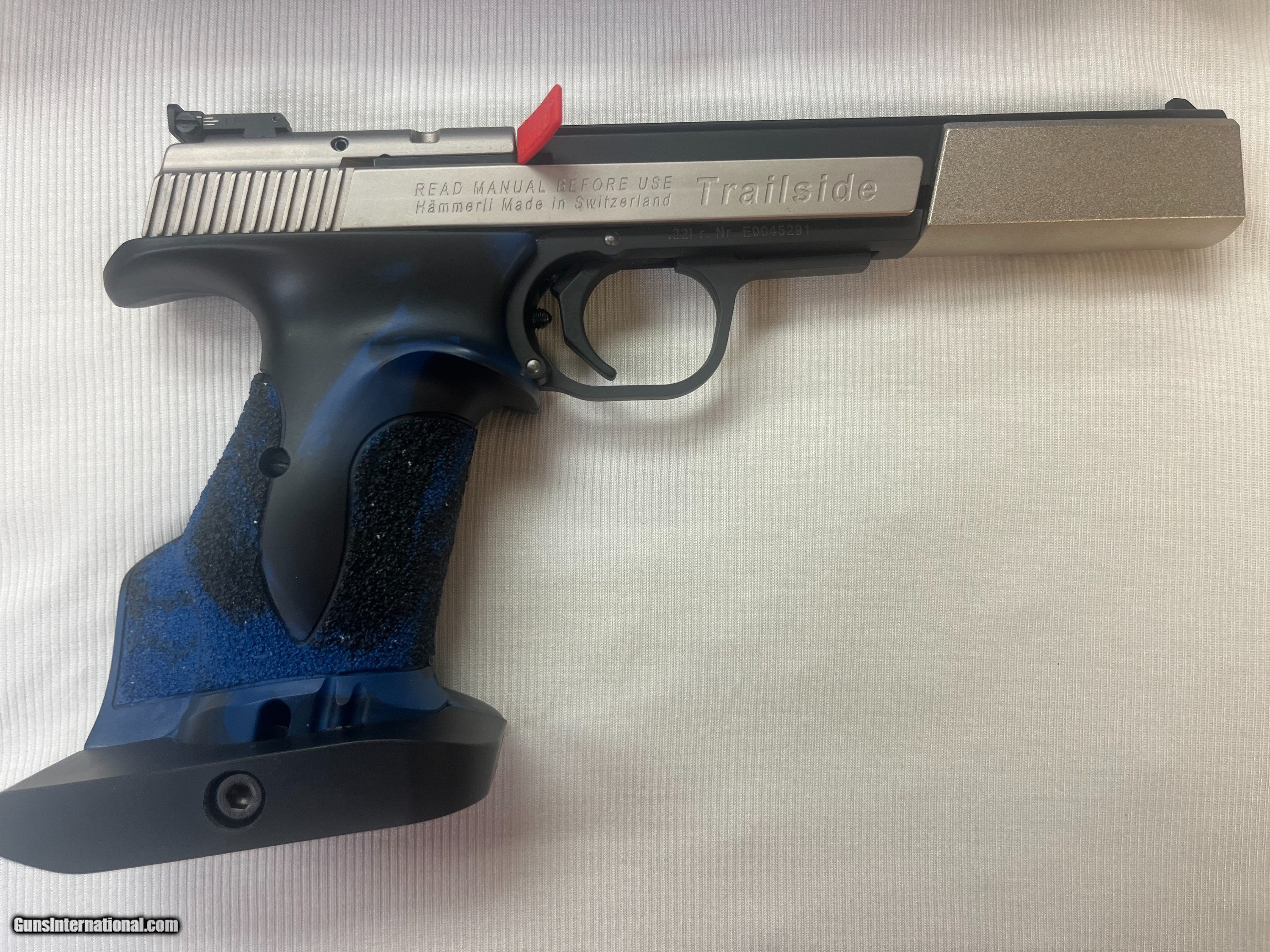 Description: Like New Sig Saurer Hammerli Trailslide Pistol chambered in a .22LR with a 10-round magazine. Serial Number E0045291. The grips are blue and black laminate grips with thumb and index finger rest. Comes in a factory box with factory paperwork. Stock: Large X-ESSE Competition Grips Barrel: 6" excellent condition with sharp rifling. It has an adjustable rear end sight. Made in the Switzerland If you need more information or photos, please contact us. These are consignment firearms, and the owner receives the funds, so check or money order is preferred. Credit Card with 3% markup. We are an FFL Dealer so please be aware of your Federal & State laws before buying. Buyer pays exact shipping & insurance cost for shipment of firearm. SOLD Handgun Caliber: .22 Long Rifle Manufacturer: Hammerli Model: Trailslide Serial Number: E0045291 Barrel Length: 6 |