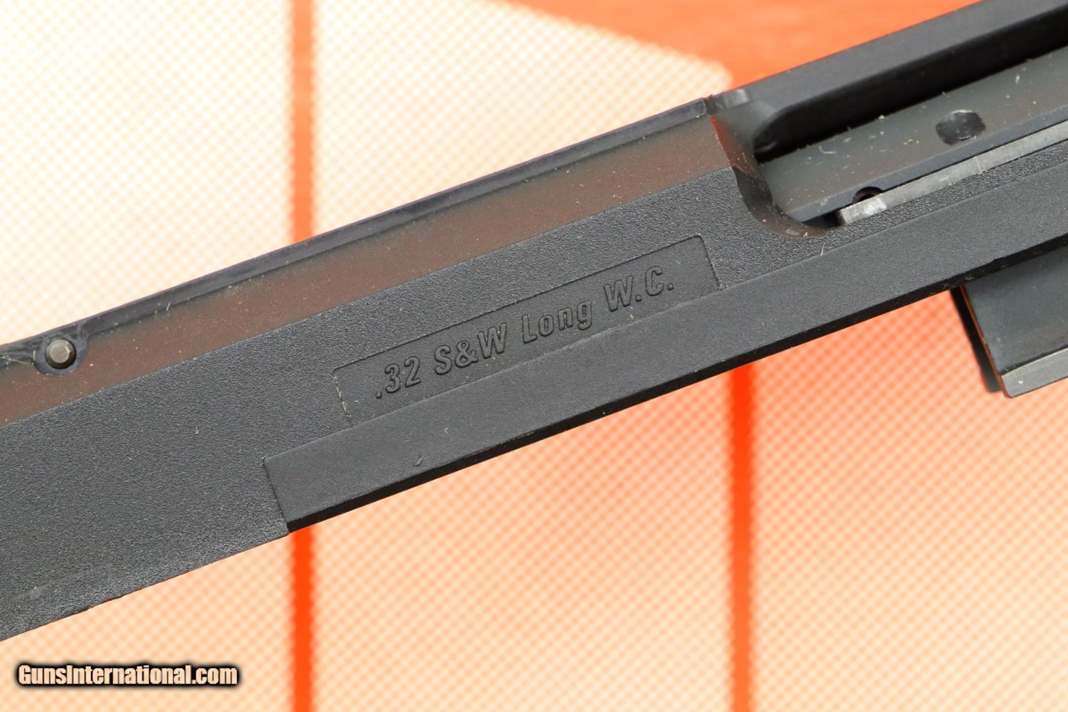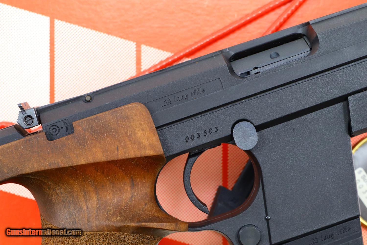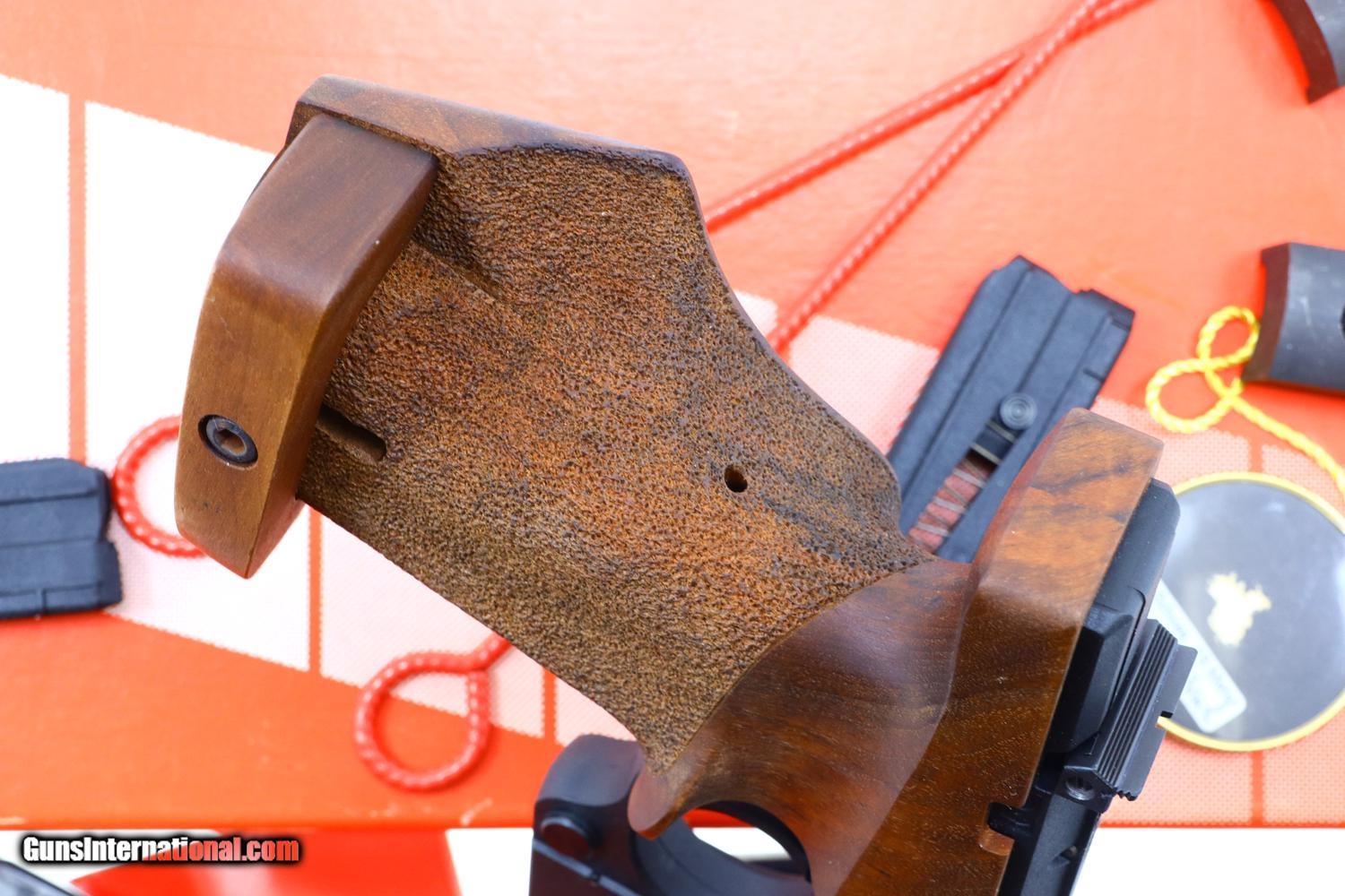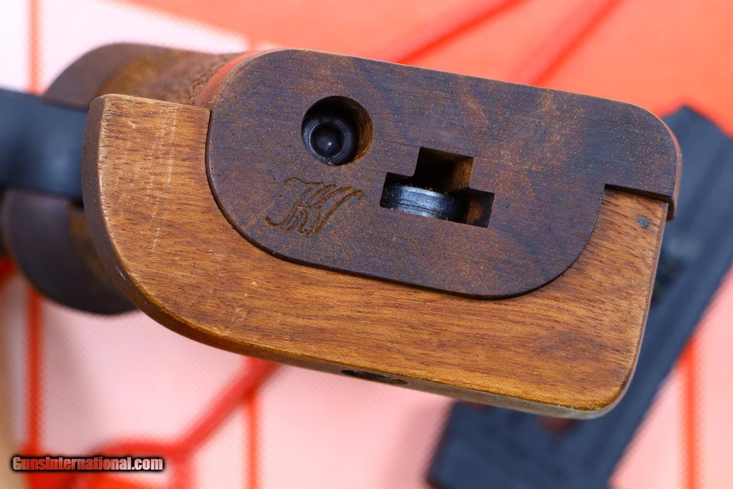 Description: Wonderful, Swiss Hammerli 280 target pistol in .22LR with .32 S&W conversion kit, complete with extra counterweights, spare .22LR magazine with loader, test target, cleaning tool packet, pair of cleaning rods, in original matching shipping box. Synopsis: Wonderful, virtually new, Swiss Hammerli 280 target pistol in .22LR with .32 S&W conversion kit, complete with extra counterweights, spare .22LR magazine with loader, test target, cleaning tool packet, pair of cleaning rods, in original matching shipping box. Condition: Virtually new with only the most minute handling marks. The same condition applies to the .32 S&W Long W.C. (Wad Cutter) conversion kit. Mirror bores. Perfect manual mechanics. Excellent box, solid with a few scuffs, the end label specifying the pistol with “Mit 9mm” hand written (should have been Mit .32 S&W Long W.C.). ~~Insured shipping fee of $65; most packages shipped using FedEx 2nd Day.~~ SOLD Manufacturer: Hammerli Serial Number: 3503 Caliber Info: 0.22/.32 S&W |