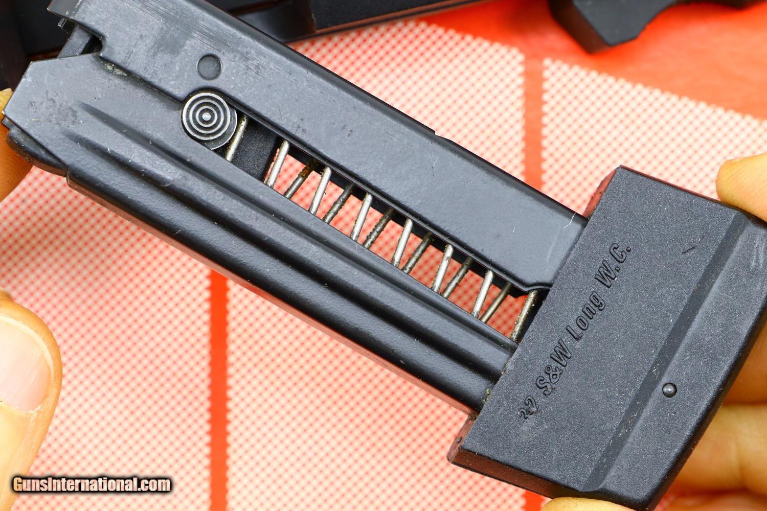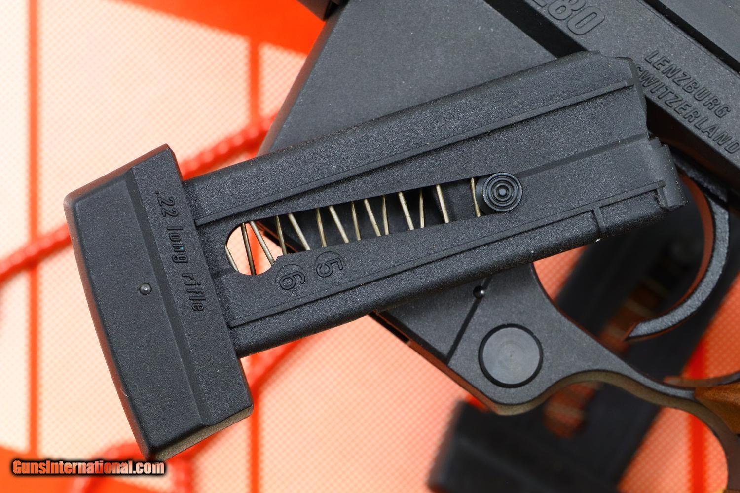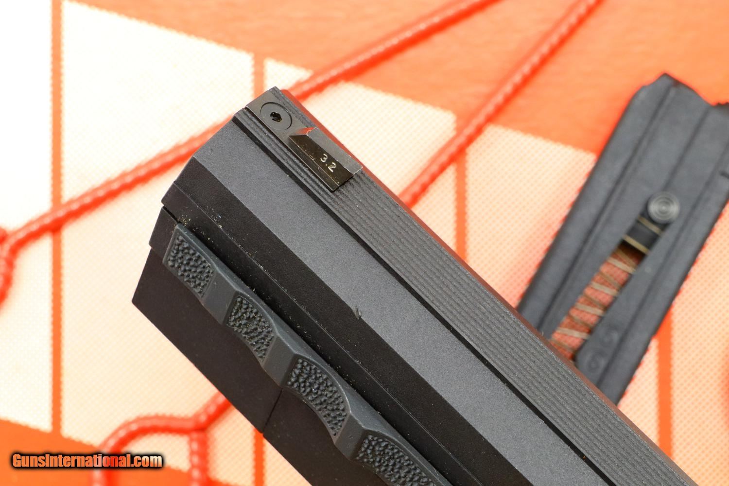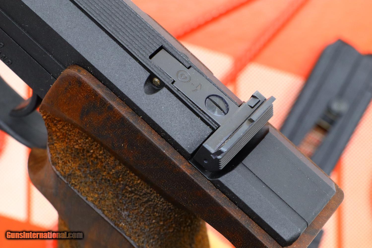 Description: Wonderful, Swiss Hammerli 280 target pistol in .22LR with .32 S&W conversion kit, complete with extra counterweights, spare .22LR magazine with loader, test target, cleaning tool packet, pair of cleaning rods, in original matching shipping box. Synopsis: Wonderful, virtually new, Swiss Hammerli 280 target pistol in .22LR with .32 S&W conversion kit, complete with extra counterweights, spare .22LR magazine with loader, test target, cleaning tool packet, pair of cleaning rods, in original matching shipping box. Condition: Virtually new with only the most minute handling marks. The same condition applies to the .32 S&W Long W.C. (Wad Cutter) conversion kit. Mirror bores. Perfect manual mechanics. Excellent box, solid with a few scuffs, the end label specifying the pistol with “Mit 9mm” hand written (should have been Mit .32 S&W Long W.C.). ~~Insured shipping fee of $65; most packages shipped using FedEx 2nd Day.~~ SOLD Manufacturer: Hammerli Serial Number: 3503 Caliber Info: 0.22/.32 S&W |