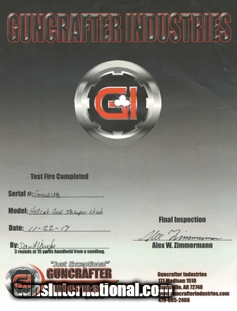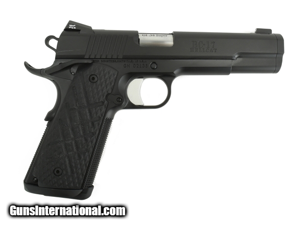 Description: Guncrafter BC-17 Hellcat .38 Super caliber pistol. Hellcat Government Lightweight model with alloy frame with ambi safety, top slide serrations, “Battle Crown” bushing and night sights. Excellent condition with carry bag and extra magazine.