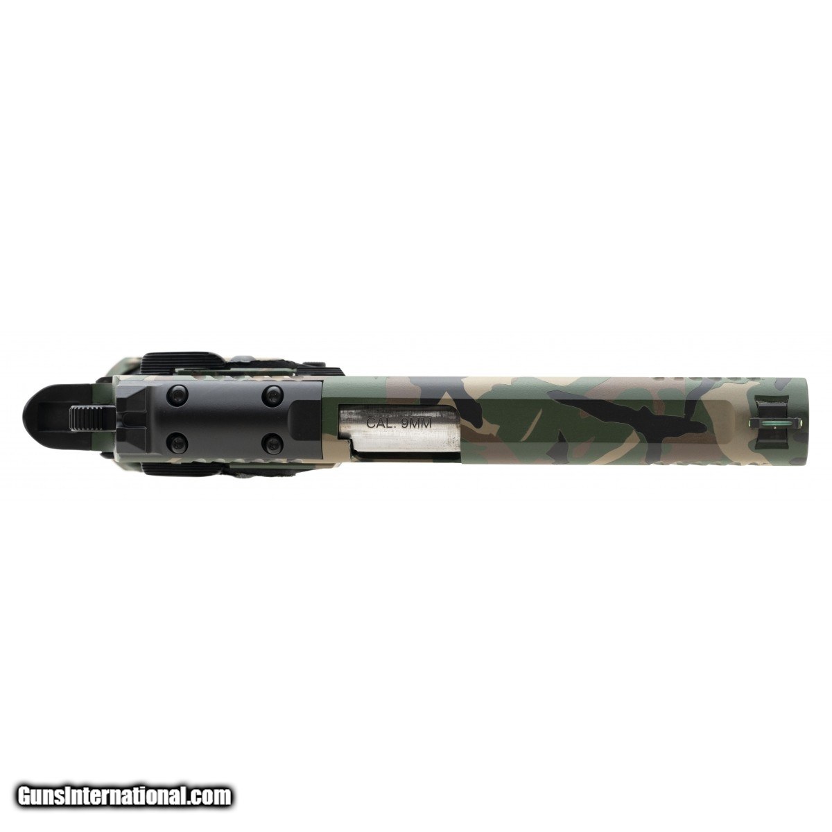 SN:D0012. 5"" full size 20RD steel framed 1911 pattern handgun with an optics ready slide and a woodland cerakote. In excellent condition. Comes with spare mag and foam filled Plano box.
