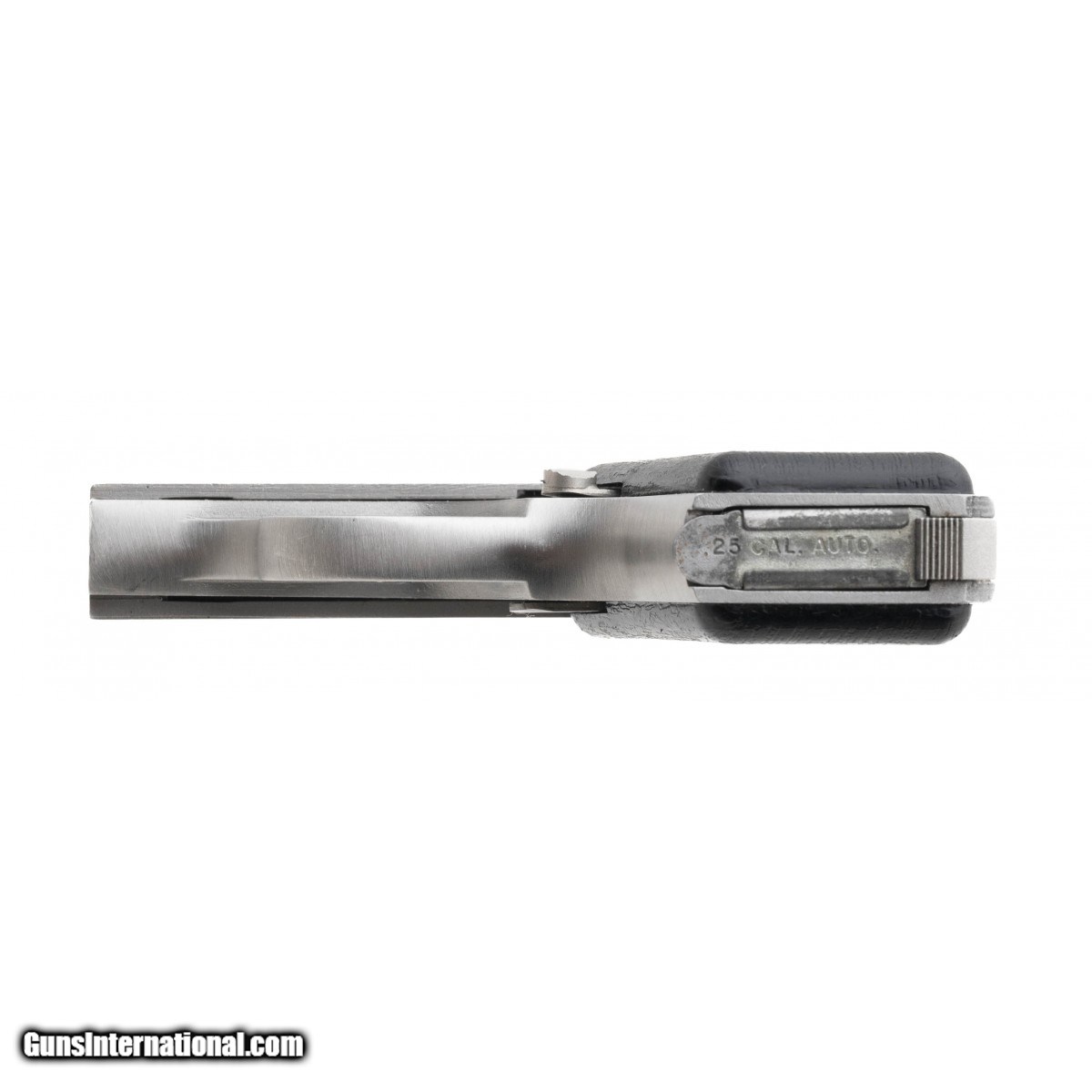 Description: " SN:006655. Made circa 1970s. .25 cal with a 2"" barrel. Bore is excellent. Stainless steel pocket pistol. Overall condition is excellent. SOLD |
