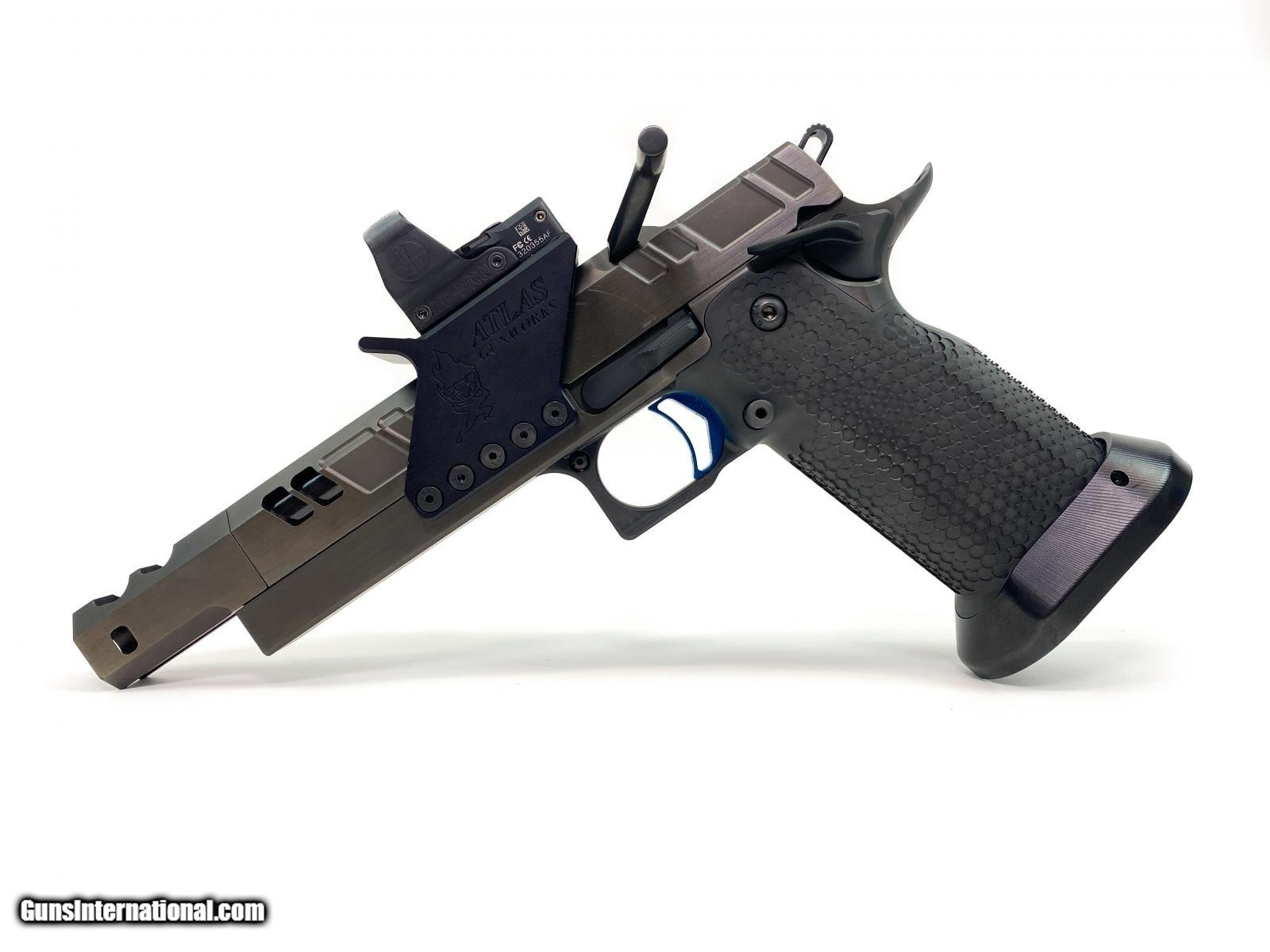 Description: Atlas Gunworks Chaos 9x19mm, 5" Barrel with Compensator, PVD Grey Slide/Frame w/Polished Flats, DLC Controls and Grip, Curved Blue Trigger, Regular Magwell, PT Grip, 2 Magazines, Weber Tactical Holster, Memory Foam Case SOLD Manufacturer: ATLAS GUNWORKS Model: CHAOS Caliber Info: 9X19MM Condition: used Barrels: 5 BARREL |
