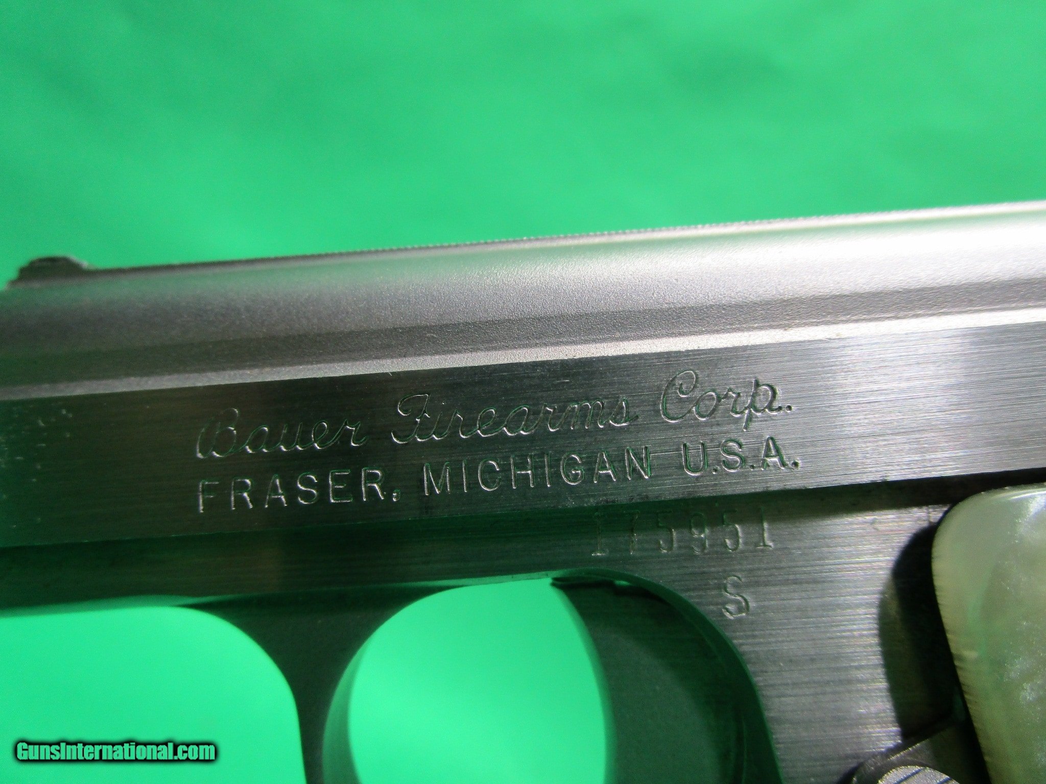 Description: Guns Listing ID: 489245 We have a used Bauer Firearms Bauer Automatic semi-automatic pistol for sale. This is chambered in 25ACP with a 2\" barrel. It comes as shown in pictures with one 6 round magazine and original factory box. This is in Very Good Used Condition. Overall we would grade at approx 98%. Check out the pictures and feel free to call or email with any questions. SOLD Manufacturer: BAUER FIREARMS Model: BAUER AUTOMATIC Caliber Info: 25 ACP Condition: Used - Non-Certified Barrels: 2 BARREL Finish: STAINLESS |
