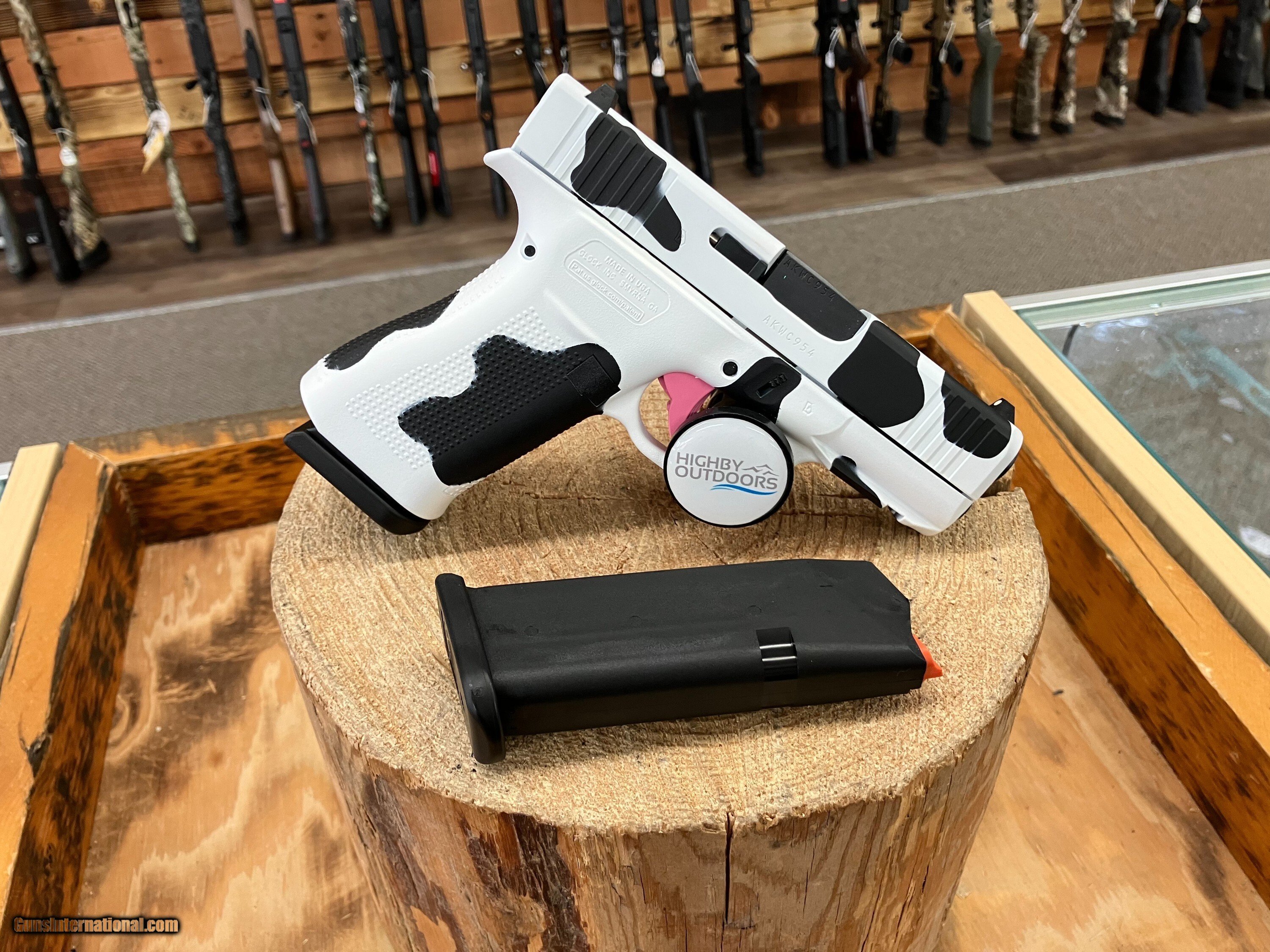 Description: Chambered in 9x19, the G43X MOS has slide cuts designed for specific micro-optics and the GLOCK Slim Mounting Rail for attaching accessories. It is the ideal tactical partner in the well-known GLOCK Slimline design for easy concealment. This Exclusive model features a custom Cow Print Cerakote from Skydas. Includes Two -10 Round Magazines Features GLOCK's Safe Action System Precision-Milled Front Serrations GLOCK Marksman Barrel No Finger Grooves Handgun Caliber: 9x19mm Parabellum (9mm Luger, 9x19mm NATO) Manufacturer: Glock Model: 43X Barrel Length: 3.41 Condition: NEW Stock: 810100237684 Price: $549.99 Contact Seller |
