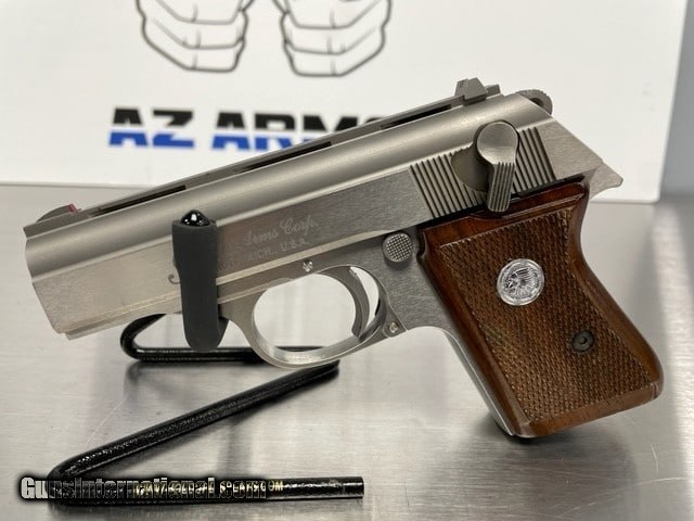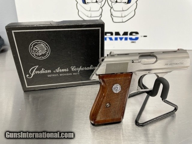 Description: Guns Listing ID: 474239 Manufactured in Detroit MI in the 1970‚‚s. This is a RARE find. Pristine condition in original box. This firearm has not been fired ever SOLD Manufacturer: INDIAN ARMS Model: 380 AUTMATIC Caliber Info: 380 ACP Condition: Used - Non-Certified Barrels: 3.25 BARREL Finish: STAINLESS/WOOD GRIPS |