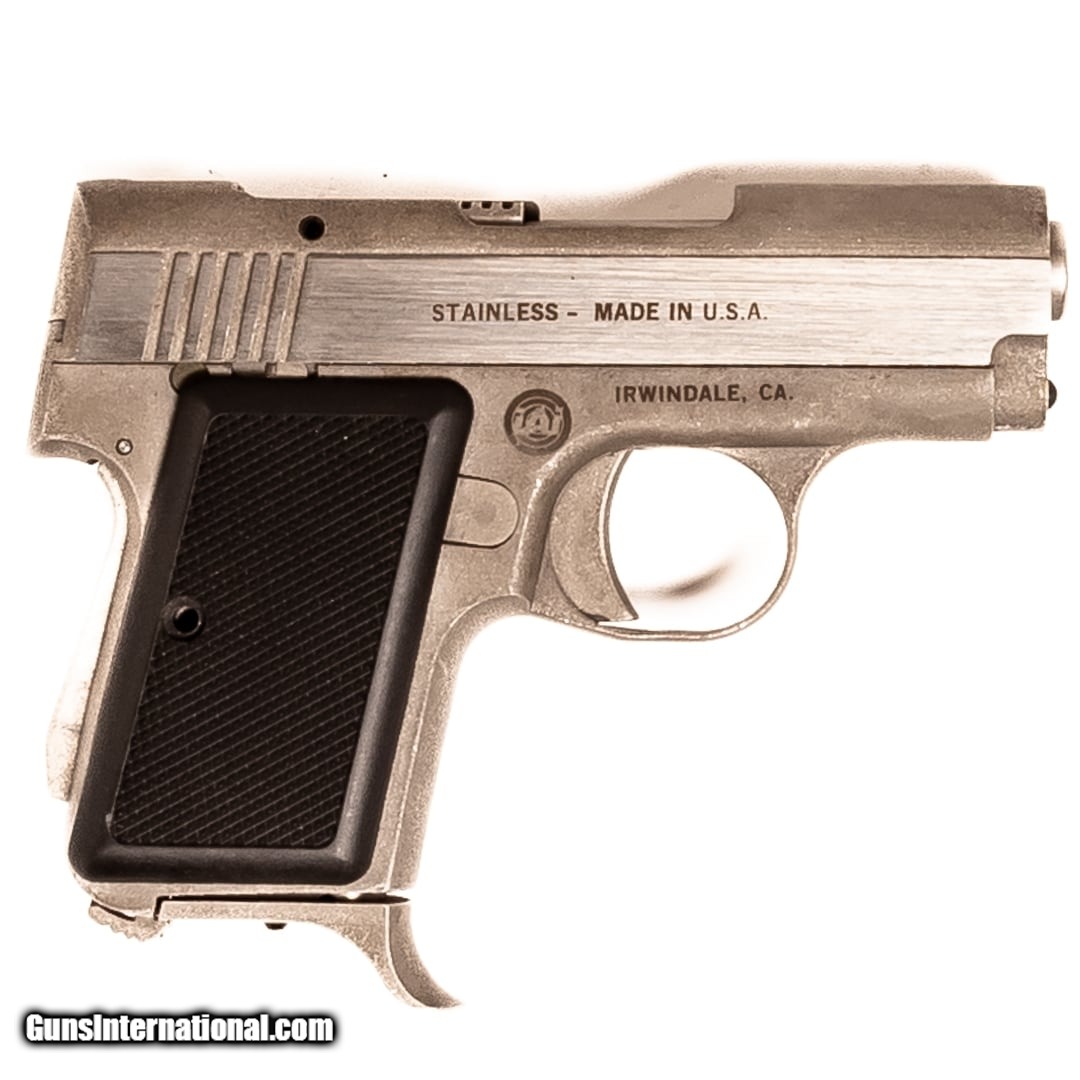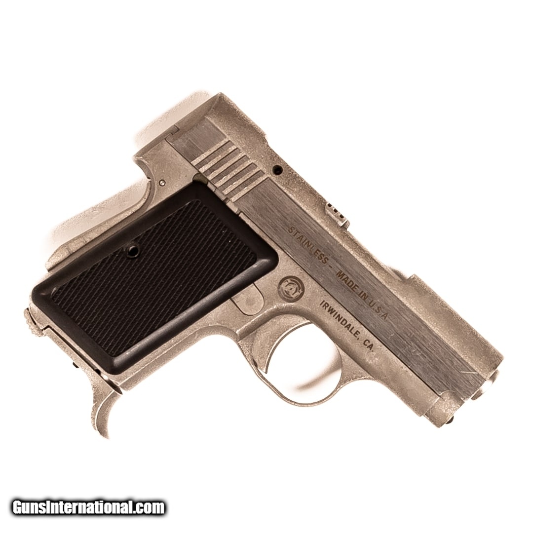 Description: Guns Listing ID: 679819 The Irwindale Arms Back Up is a small ‘pocket pistol’ that is chambered in .380 ACP. This handgun makes for a great deep concealment option. This handgun features one 8-round magazine. Get the best bang for your buck when you get a Certified Used Firearm . When you see the Certified Used stamp on any of our firearms, you can be confident that you’re getting exactly what you want – a gun only in very good to excellent condition and held to the highest quality standard. All Certified Used Guns come with a ‘no questions asked’ return policy . PLUS, ALL CERTIFIED USED GUNS SHIP FREE! SOLD Manufacturer: IRWINDALE ARMS Model: BACK UP Caliber Info: .380 ACP Condition: Used - Certified Barrels: 2.5 barrel Finish: STAINLESS |
