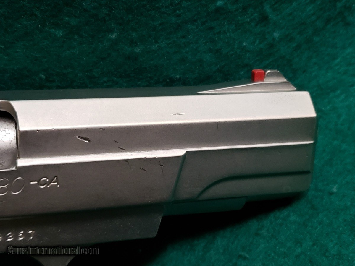 Description: This is a nice affordable Bryco/Jennings model T380-CA chambered in .380 ACP. Silver finish. Has a few scrapes on the slide but looks great otherwise. 4 inch barrel with a nice bore that has good rifling. Comes with one magazine. Original black grips. Adjustable rear sight with an orange front sight post. Seems to work ok but due to the price and finicky nature of these "Saturday Night Special's" we are selling this gun AS-IS with no guarantees. See our pictures of this pistol and if you have any questions please call Justin or Ben at Olde West (530)243-8334. Shipping will be $30 insured within the USA. NOTE: THIS FIREARM IS NOT LEGAL FOR SALE TO RESIDENTS OF CALIFORNIA -Payment Must be Received Within 15 Days or Item Will be Relisted -There Will Be a 3% Processing Fee Applied to all Credit Card Transactions -California Residents Will be Required to Pay Sales Tax of 7.25% -All Firearms Shipped and Insured Within the USA. Shipping Fees Calculated to Lower 48 States. Alaska and Hawaii May Cost Extra -NO INTERNATIONAL SALES -Generally Handguns Ship USPS Priority and Long Guns Ship UPS Ground -Shipping Can be Combined to Save You Money if You Purchase Multiple Guns of the Same Type (E.G. Pistols or Long Guns) -Please Message me for a Shipping Quote if the Listing Does not Specify a Rate -Many Handguns are Not Legal for Sale in California. Please Check the Item Description and California DOJ Handgun Roster Before Purchasing -C&R Eligible Firearms May not be Shipped to C&R Holders Within California. They Must be Shipped to an FFL Dealer and Picked Up From There. We can Ship C&R eligible firearms directly to C&R Holders in all Other States -Antique Firearms (Firearms Made Before 1899) May be Shipped Direct Without an FFL Required. We do Require Photo Identification Proving That you are at Least 21 Years of age for Antique Firearms to be Shipped Direct. For Antique Firearms, we Also Require a Statement That you May Legally own Firearms -Please Check Your Local and State Laws Regarding Firearms and Magazine Restrictions Before Purchasing. As the Buyer, it is Your Responsibility to Make Sure That This Firearm is Legal in Your State and Jurisdiction Due to Varied Laws in Every State SOLD Manufacturer: BRYCO/JENNINGS Model: T380-CA Serial Number: 1259367 Caliber Info: .380 ACP Condition: AS-IS Bore Condition: NICE Action: SEMI-AUTO Finish: SILVER Extras: ONE MAGAZINE |