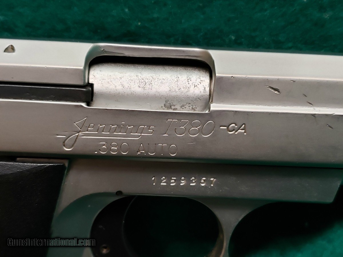 JENNINGS/BRYCO - MODEL T380-CA. SILVER FINISH. 4 INCH BARREL. W-ONE MAGAZINE. GOOD BORE! SOLD AS-IS - .380 ACP