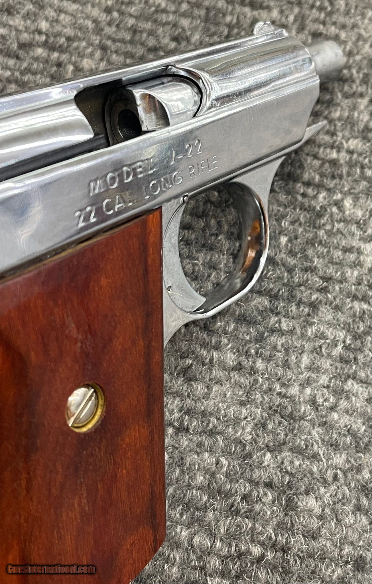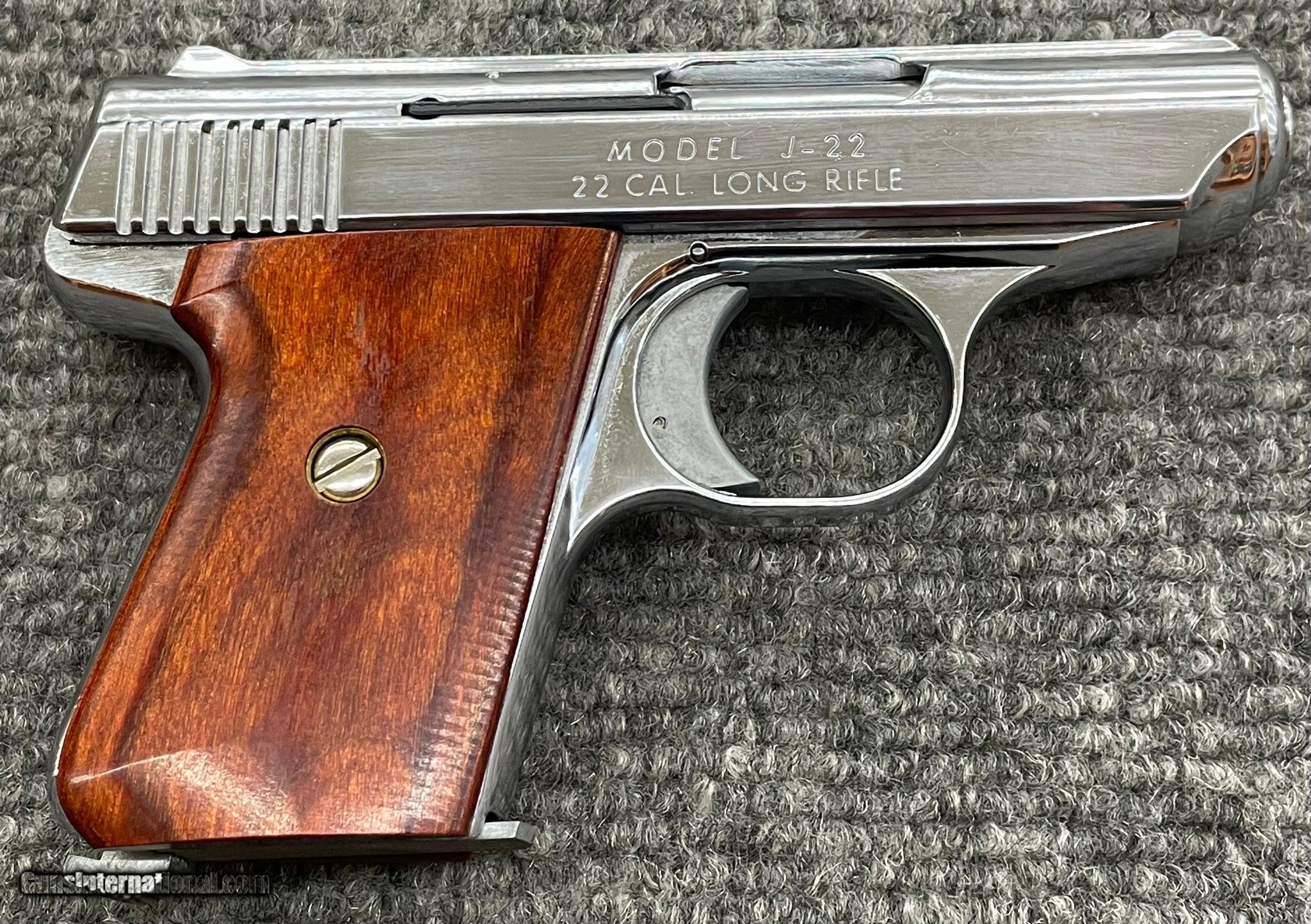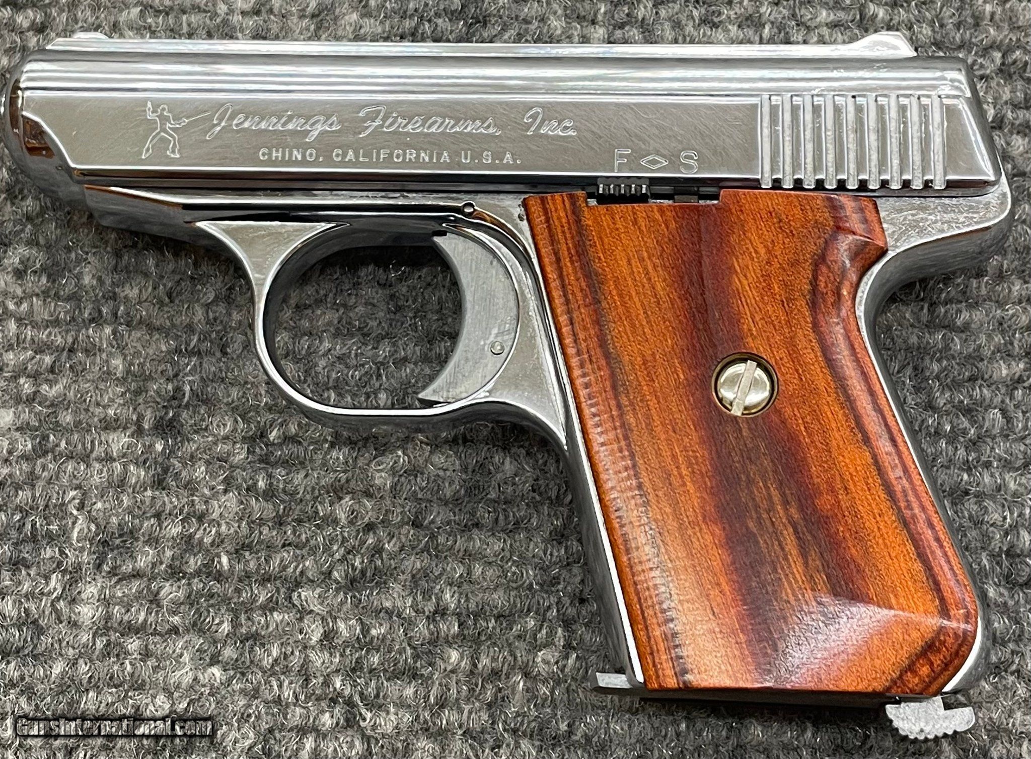 Description: Guns Listing ID: 545544 The Jennings J-22 is a small, .22 LR caliber pistol known for its low cost and reputation as a \"Saturday Night Special.\" This listing is in very good condition with little signs of wear. This listing comes with the J22 handgun 1 magazine the original box and instructions. This handgun is exactly as pictured!!!! SOLD Manufacturer: JENNINGS FIREARMS Model: J 22 Caliber Info: .22 CAL Condition: Used - Non-Certified Barrels: 2.5" BARREL Action: SEMI AUTOMATIC Finish: chrome |