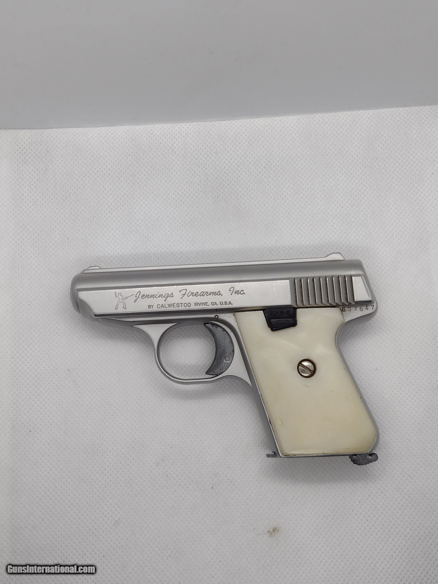 Description: Guns Listing ID: 478999 GUNS CONDITION IS GOOD, HAS SOME WEAR AS SHOWN IN PICTURES. HAS A THUMB SAFETY, 1-6 ROUND MAG, FAUX PEARL GRIPS, STAINLESS FINISH. NO BOX. SOLD Manufacturer: JENNINGS FIREARMS Model: J-22 Condition: Used - Non-Certified Barrels: 2.5 Gauge Info: .22 LR Finish: matte stainless |