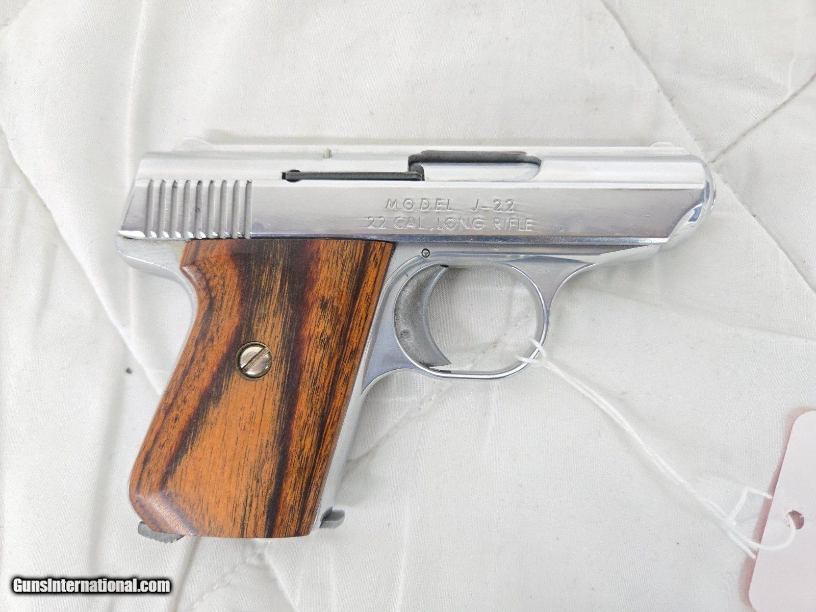 JENNINGS FIREARMS J22 Chrome w/Wood Grips, Magazine .22 LR