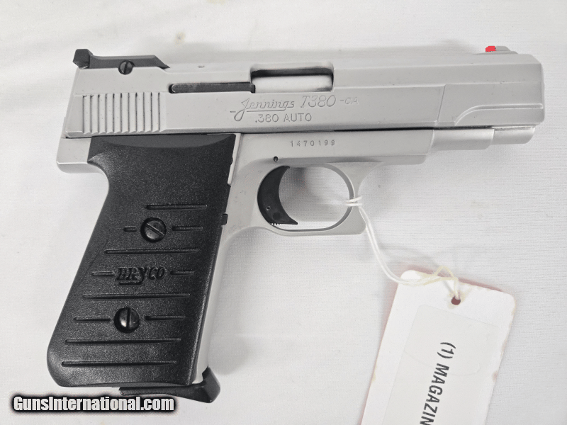 Description: Guns Listing ID: 551557 Used Jennings T380CA .380 ACP Semi-Auto Pistol w/Magazine Jennings T380CA .380 ACP Semi-Automatic pistol (1) Magazine SOLD Manufacturer: JENNINGS FIREARMS Model: T380CA w/Magazine Caliber Info: .380 ACP Condition: Used - Non-Certified Barrels: 4 BARREL Action: SEMI AUTOMATIC Finish: 1 |