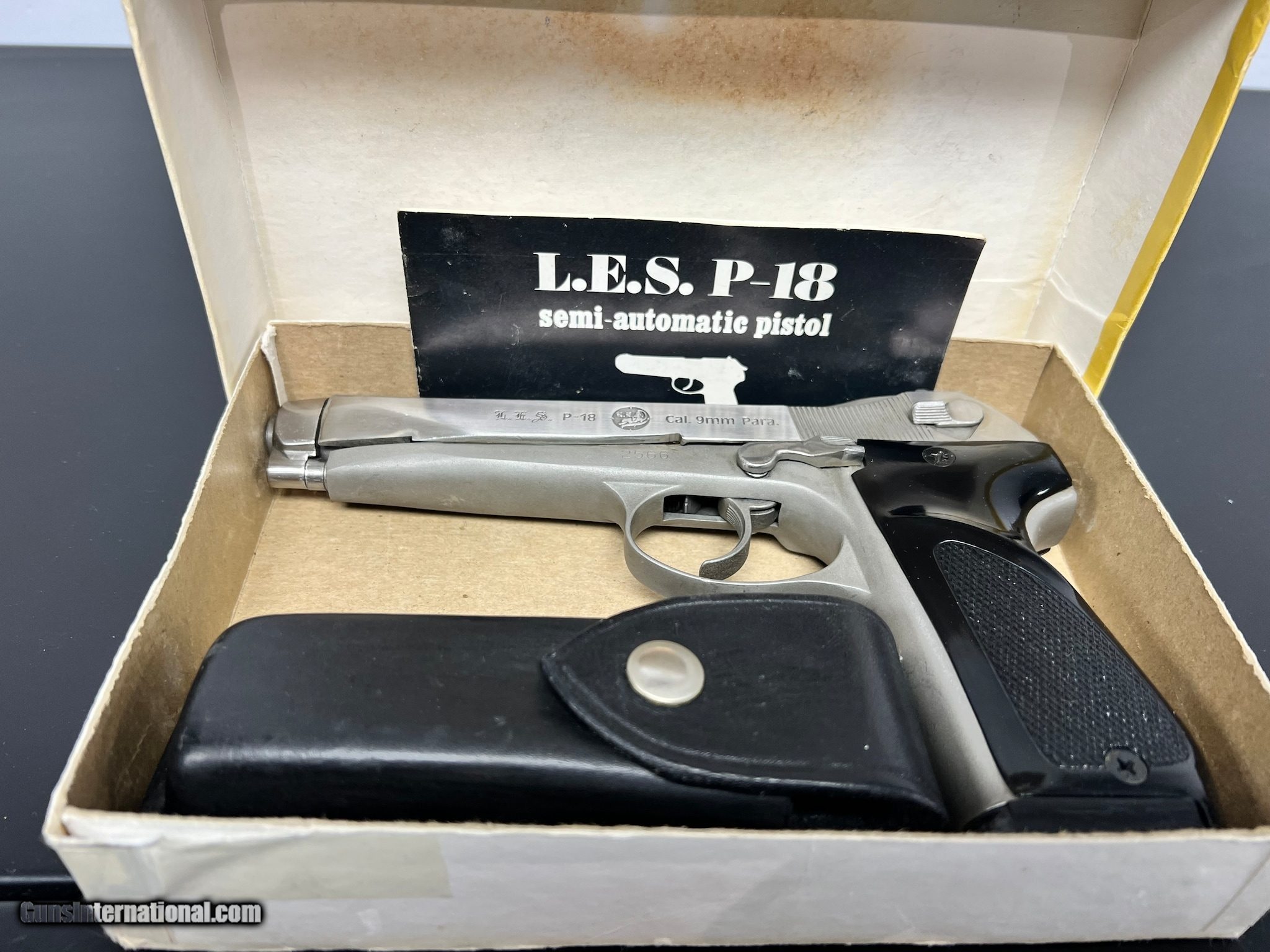 Description: Guns Listing ID: 909296 L.E.S. P-18 9MM 5.5\" BARREL STAINLESS 18RD MAG FACTORY BOX & PAPERWORK LNIB LEATHER MAG POUCH COPY OF THE STEYR GB (RARE LOW PRODUCTION FIREARM. ) THANKS FOR LOOKING. SOLD Manufacturer: L.E.S. INCORPORATED Model: P-18 ROGAK (STEYR GB) Caliber Info: 9MM LUGER (9X19 PARA) Condition: Used - Non-Certified Barrels: 5 BARREL Finish: STAINLESS |