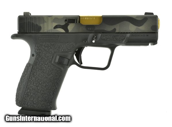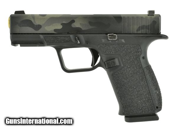 Description: Nomad Nomad9 9mm caliber pistol. Custom Glock 19 size pistol with camo finish and upgrade parts.
