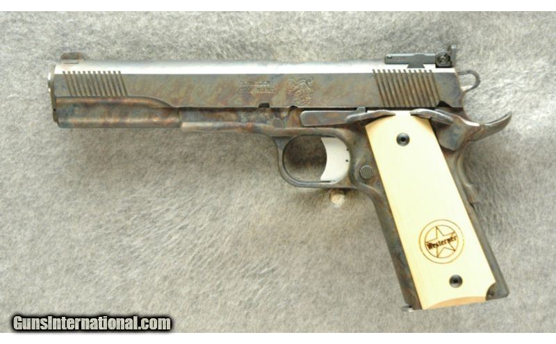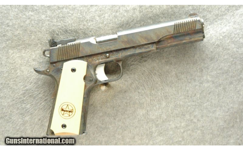 Description: Olympic Arms Westerner Trail Boss pistol .45 Auto. As new condition, LPA adjustable rear sight, case colored finish. With 2 mags and hard case. SOLD Caliber Info: .45 Auto Metal Condition: Excellent, Appears As New Wood Condition: Grips Are Excellent, Appear As New Bore Condition: Bright Barrels: 6" Barrel, Case Colored Finish Triggers: Single Action, Aluminum Trigger, Lightweight Hammer, Extended Grip Safety & Safety Lever Stock: Factory Wood Grips Weight: 2 Lbs 10 ozs Sights: Adjustable Iron Sights Extras: With 2 mags and hard case Item Location: La Vista, NE |