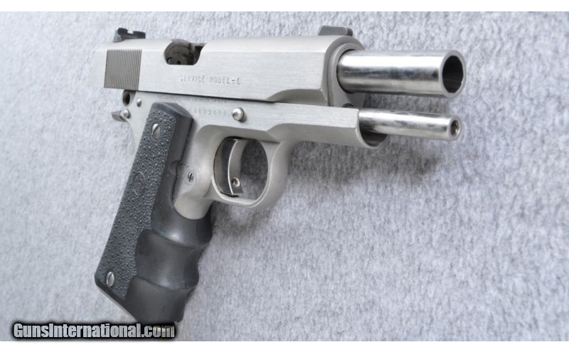 Description: SOLD Manufacturer: 1983-1985 Caliber Info: .45 Automatic Colt Pistol Chambers: 7 round magazine Metal Condition: Very good with few handling marks Wood Condition: Grips are in good shape Bore Condition: Bright & Crisp Barrels: 4 Triggers: Single Action Stock: Hogue rubber Weight: 38 oz Sights: Fixed blade front, Dovetailed Notch rear Extras: Hard Case Item Location: Grand Junction, CO |