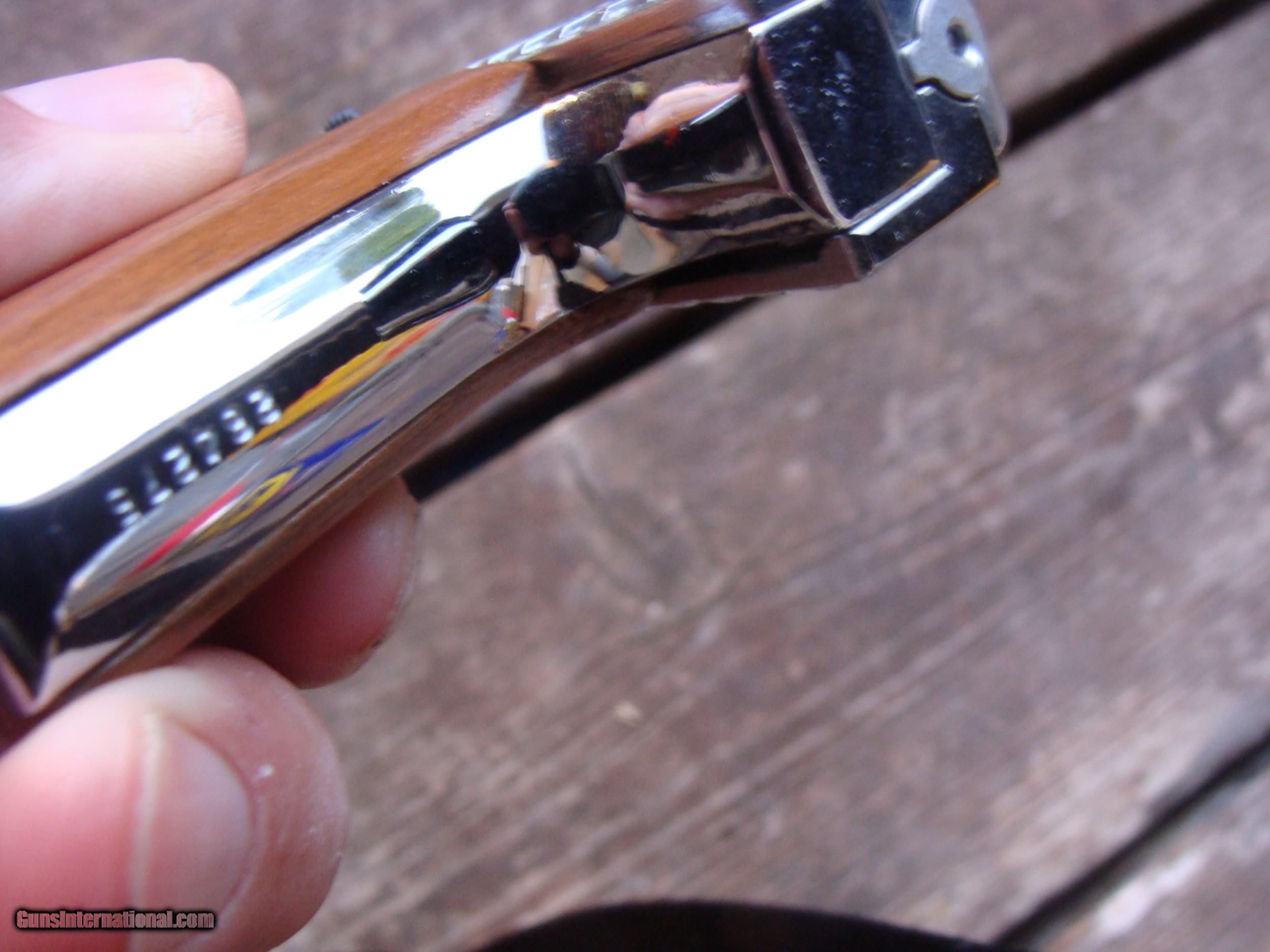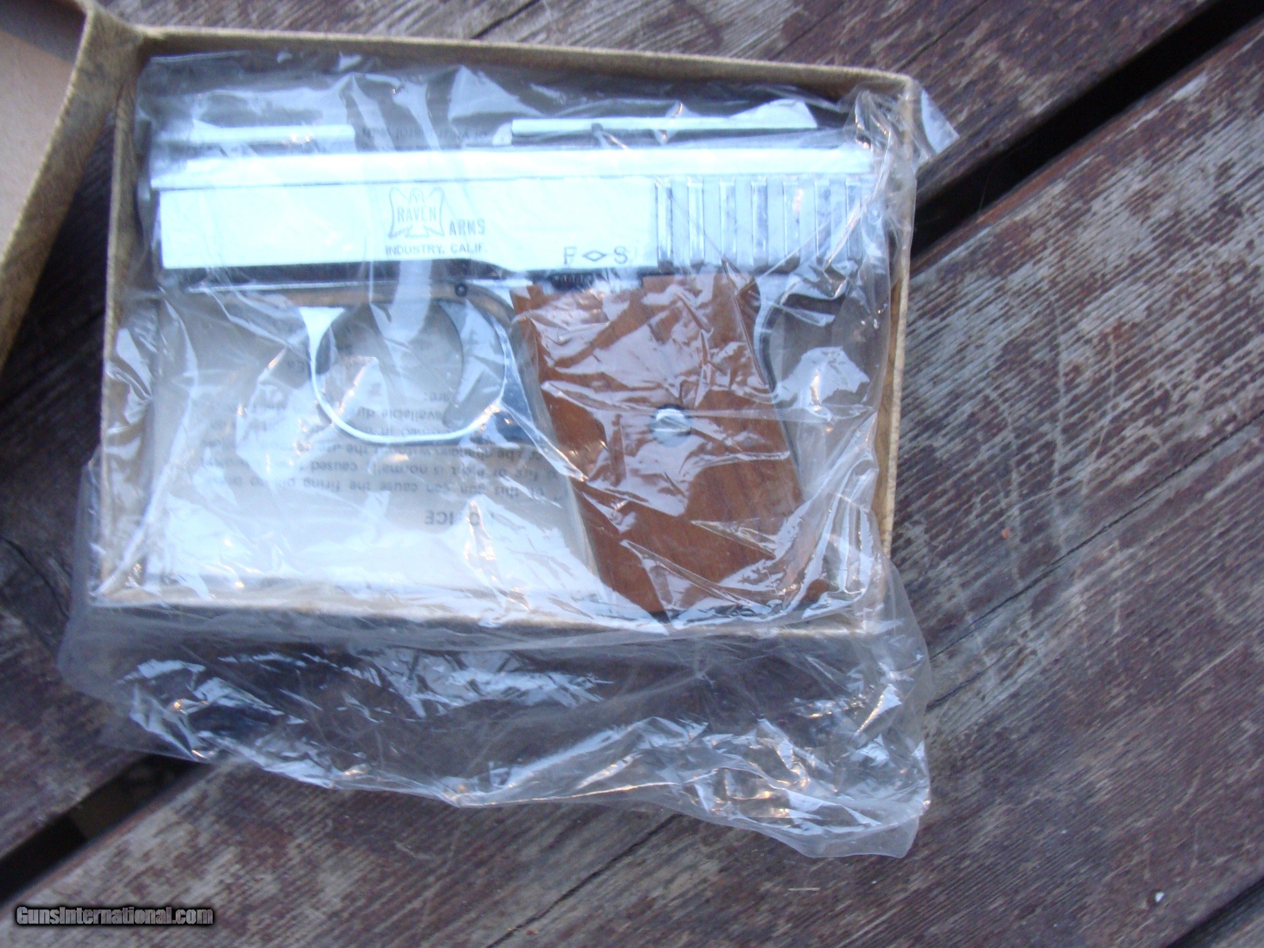 Description: This is a consignment gun and is being sold as is with no return. It is new in box with correct properly serialialized box to gun and papers. It is in new cond. and appears unfired. These are not known to be high quality although they are US Made (Fl.), it has walunut grips and and is bright chrome finish. It probaly still has factory cosmoline and wil need to be cleaned prior to use. Shipping is $ 17.00 to any location in the lower 48 States WE ARE AN FFL 01 IN THE NORTHEAST WHERE MANY FINE US MADE GUNS WERE PRODUCED AND WE OFTEN GET SOME FAIRLY HARD TO FIND AND HARDLY USED GUNS. WE HAVE OVER 1500 SALES ON ALL SITES WITH AN A+ RATING ON ALL (WE ALSO KEEP AN INVENTORY OF OLDER PERIOD CORRECT SCOPES; CALL WITH NEEDS) WE MOSTLY PICK VERY CLEAN GUNS, PRICE THEM FAIRLY AND WORK WITH MODEST MARGINS WE ARE HAPPY TO TAKE CONSIGNMENT GUNS AND COLLECTIONS OR WILL BUY YOURS OUTRIGHT. WE SOMETIMES ARE EMPLOYED FOR ESTATE PURPOSES AND VALUATIONS. CT RESIDENTS MUST CONTACT US TO UNDERSTAND OUR IN STATE TRANSFER POLICIES. WE CAN TAKE A CREDIT CARD HOWEVER THERE IS A 3% ADD ON BASED ON THE TOTAL FOR USE OF A CARD. IT IS ALWAYS THE BUYERS RESPONSIBILITY TO GET US A COPY OF YOUR RECEIVING FFL'S LIC AND WE REQUIRE A COPY OF YOUR PHOTO ID BEFORE THE GUN SHIPS YOU MUST CALL YOUR FFL.WE DO NOT CALL FOR YOU. LAYAWAYS OR ANY TRANSACTION NOT COMPLETED ARE SUBJECT TO A 10% RELISTING/RESTOCKING FEE. WE DO NOT OFFER AN INSPECTION PERIOD PER SE HOWEVER GUNS MAY BE RETURNED IF NOT EXACTLY AS DESCRIBED HOWEVER UNDER NO CIRCUMSTANCE MAY ANY GUN TO BE RETURNED TO HAVE BEEN REMOVED AT ANY TIME FROM RECEIVING FFL DEALERS PREMISIS. SOLD Manufacturer: Raven |