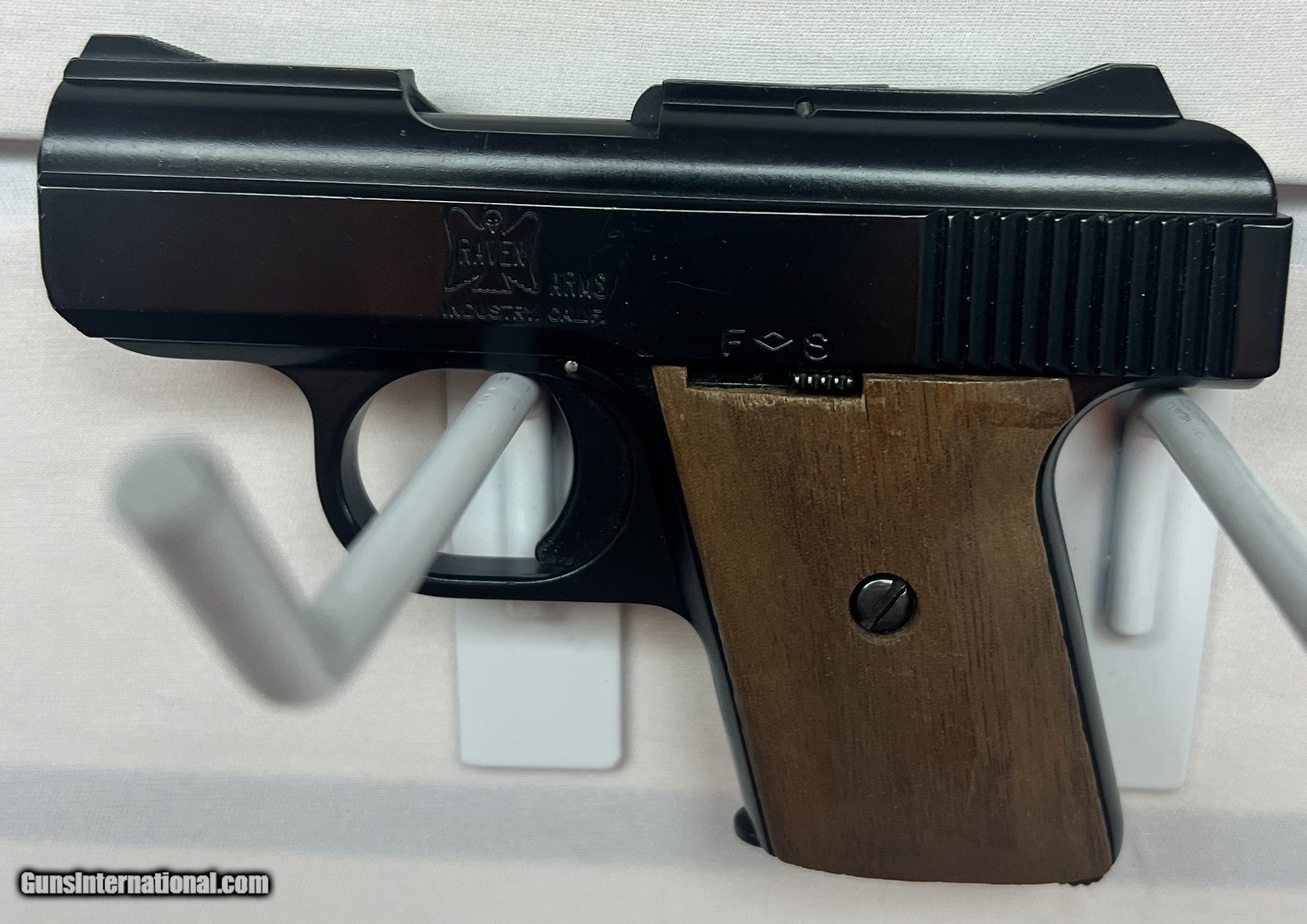 Description: Guns Listing ID: 505151 This is a very clean Raven Arms MP-25 with one 6rnd magazine. SOLD Manufacturer: RAVEN ARMS Model: MP-25 Caliber Info: .25 ACP Condition: Used - Non-Certified Barrels: 2.5 Action: SEMI AUTOMATIC Finish: blued |