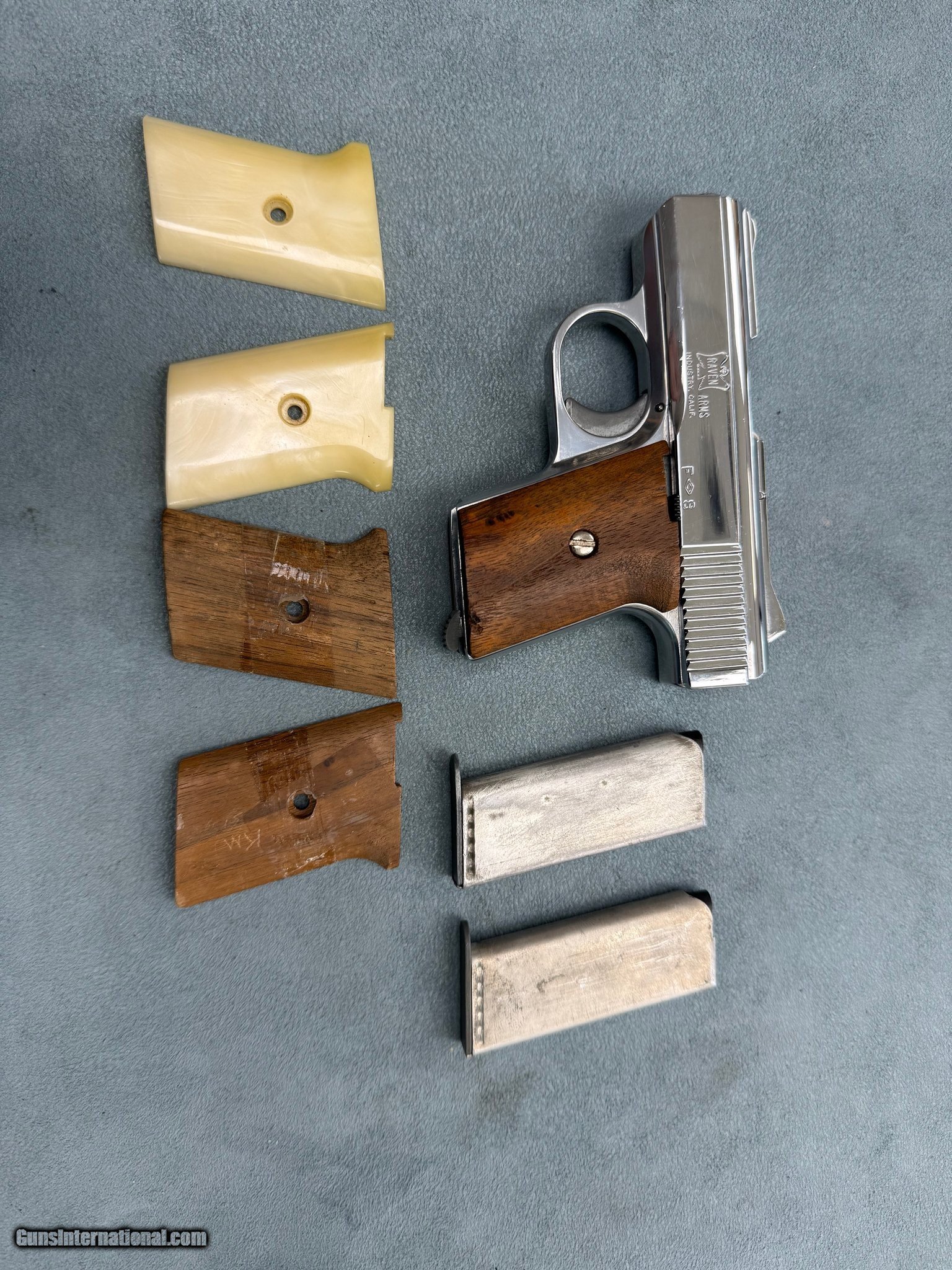 Description: Guns Listing ID: 575841 Excellent example of a raven MP – 25 .25 cal comes with 2 extra sets of grips and 2 mags SOLD Manufacturer: RAVEN ARMS Model: mp-25 Caliber Info: .25 ACP Condition: Used - Non-Certified Barrels: 2" BARREL Action: SEMI AUTOMATIC Finish: chrome |