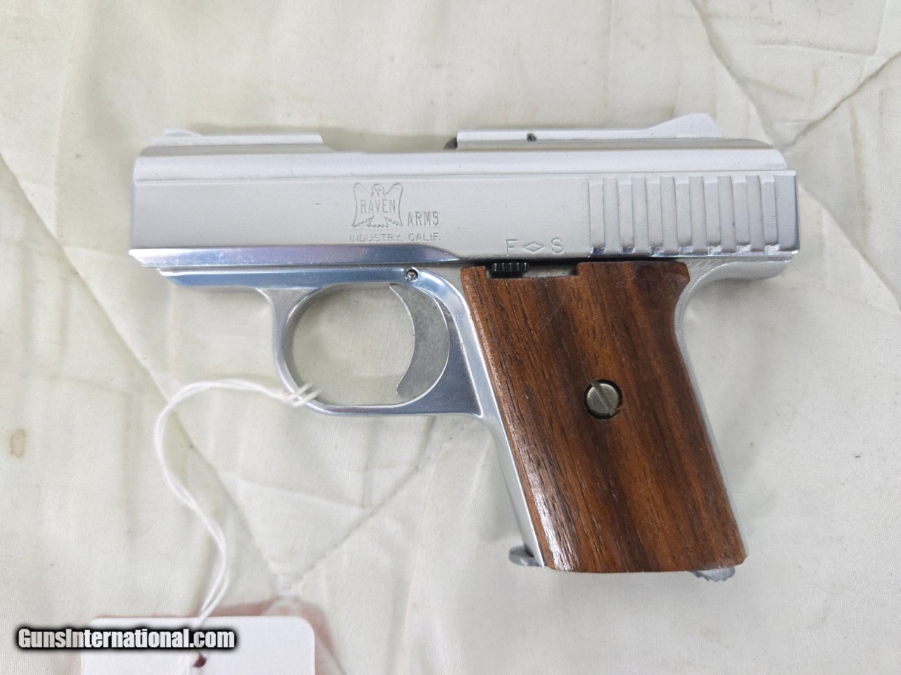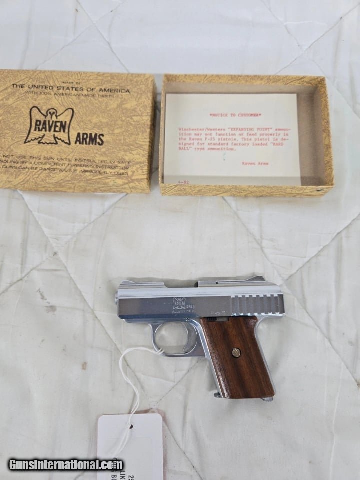 RAVEN ARMS P-25 Chrome w/Original Box, Magazine .25 ACP