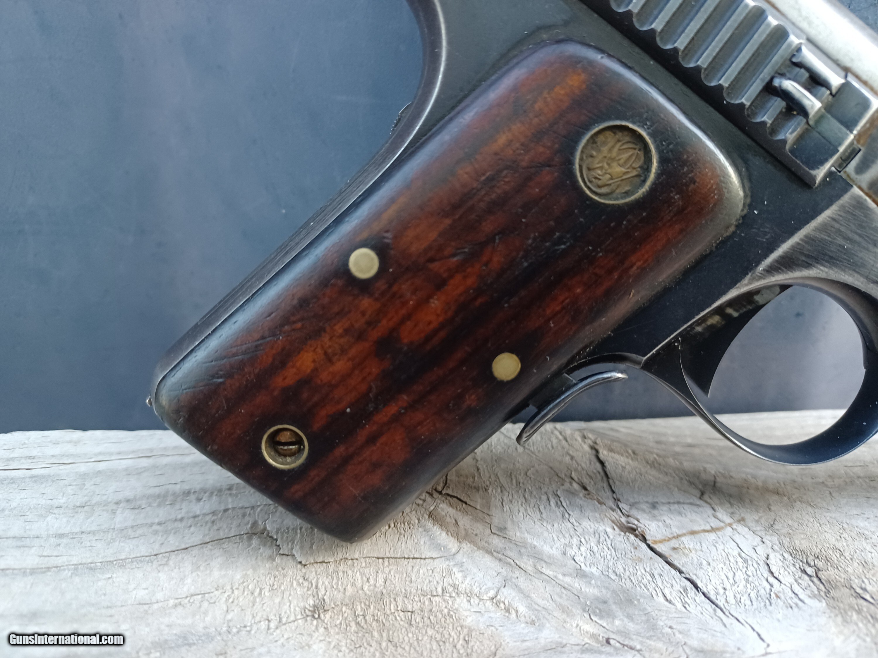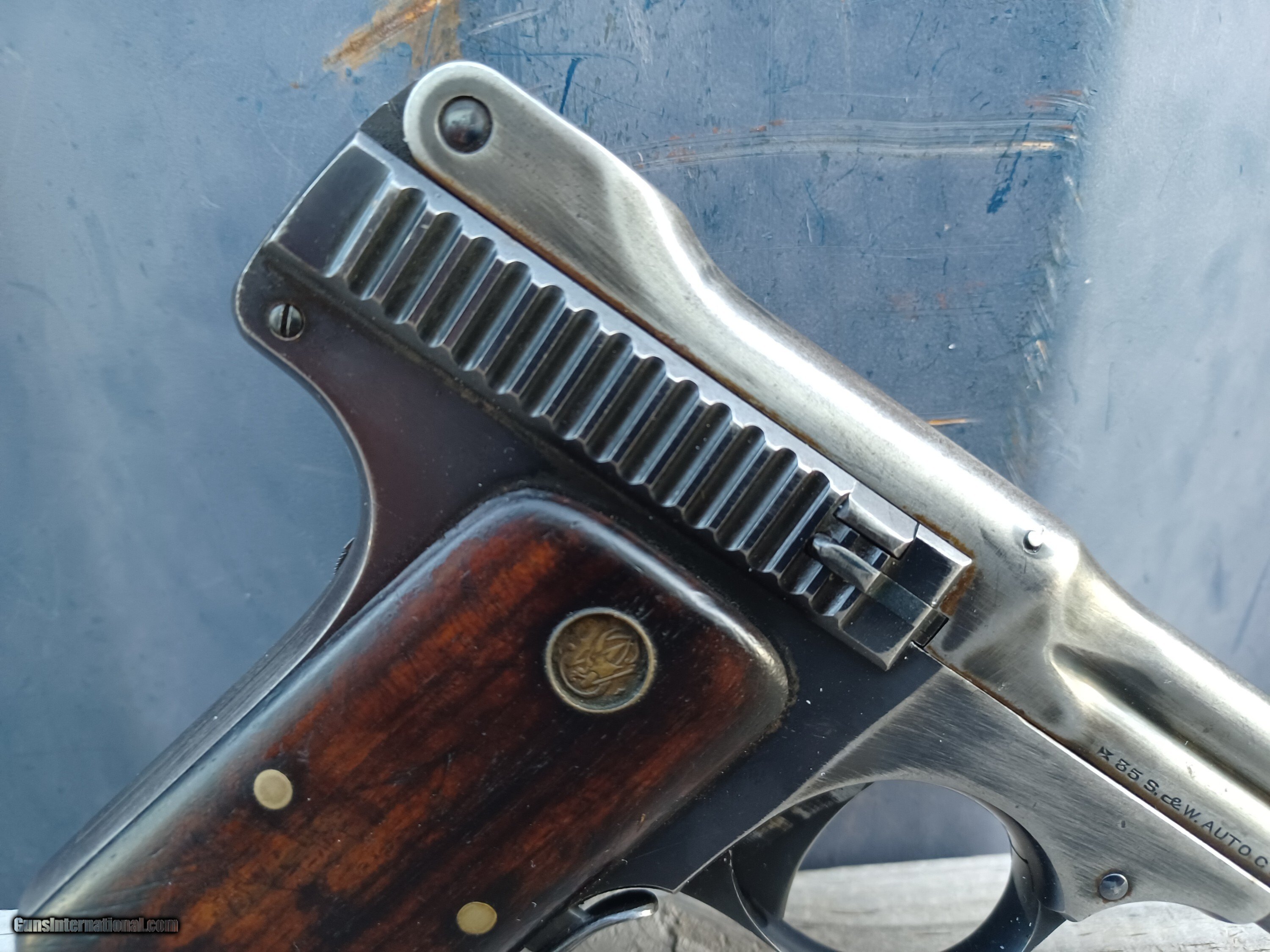 Description: Here is a Smith & Wesson model 1913 Semi-Auto chambered for 35 S&W. This pistol also shoots 32 ACP which is easy to find. Neat old gun from the early years of semi autos. Only 8350 of these were made so these are pretty rare. Thanks for looking! $25 shipping, Alaska and Hawaii will be a little more for shipping. Please call with any questions. Please click the BUY NOW button to purchase this item. We are required to charge 8.25% for Texas residents. There is a 3.5% fee if paying by credit card. Handgun Caliber: .35 S&W Auto (.35 Automatic) Manufacturer: Smith & Wesson Model: 1913 Serial Number: 7894 Condition: Good Metal Condition: Good Wood Condition: Good Bore Condition: Good Price: $469.00 Shipping: $25.00 Buy Now Contact Seller |