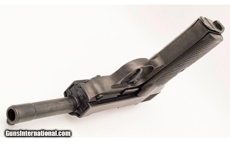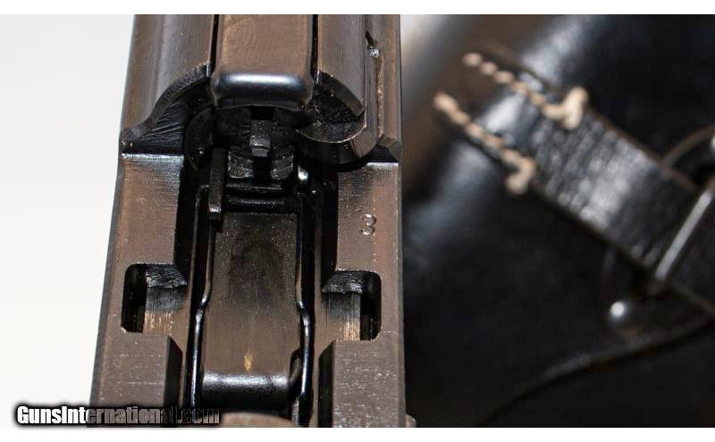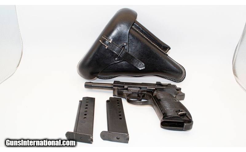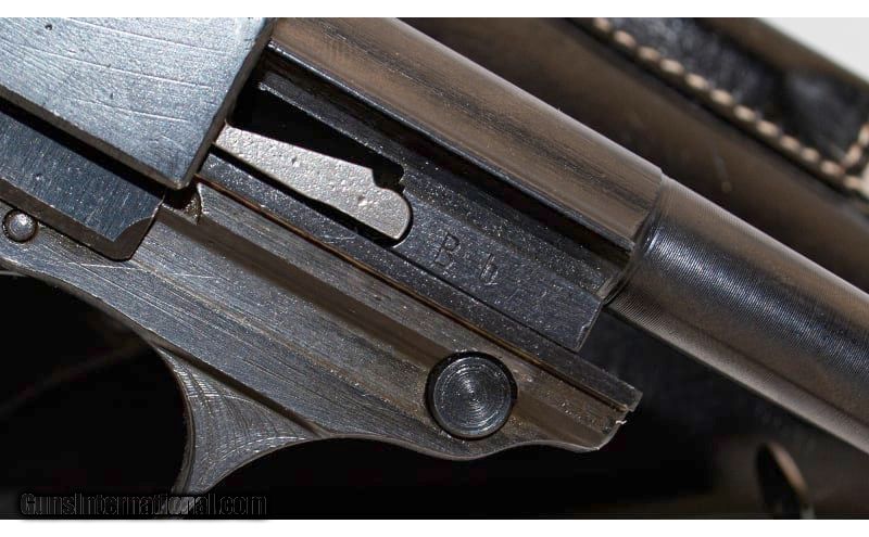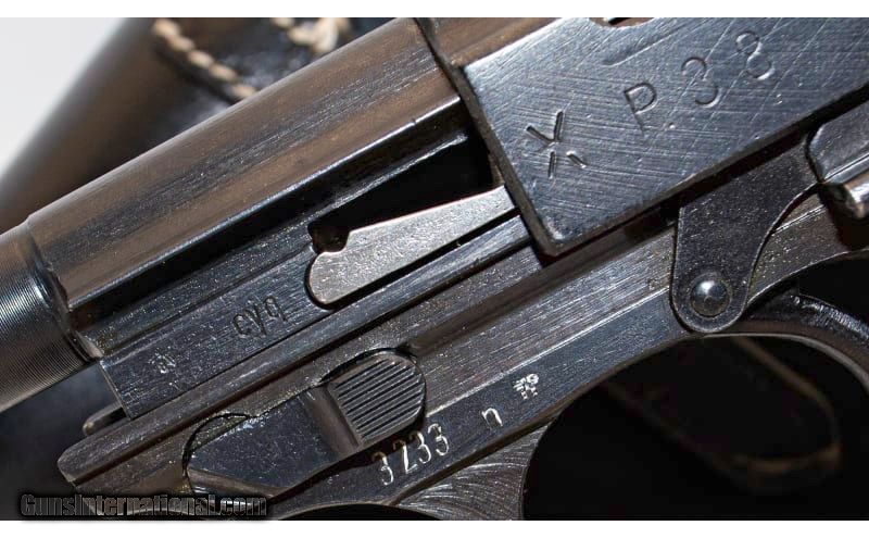 Description: Spreewerk "cyq" P38 in very good original condition. Right slide is stamped with the 3 typical German Waffenamts. The right barrel block has the letters "B b" stamped. Serial number is 3233 with an inverted "U" acceptance stamp evident. The left slide is marked with a large "X" before the P38 and "cyq". The serial number appears in 3 places, the slide the frame and the front barrel block. There is a "3" stamped on the internal slide. All markings are visible in the pictures. Pistol shows very little signs of use and is in excellent condition. The bore is very good with good rifling remaining. Grips show no signs of wear. It comes with 2 magazines. One marked P.38 and the other unmarked. It also has an aftermarket black leather holster. None SOLD Barrels: 4.75 inches Item Location: Lone Tree, CO |