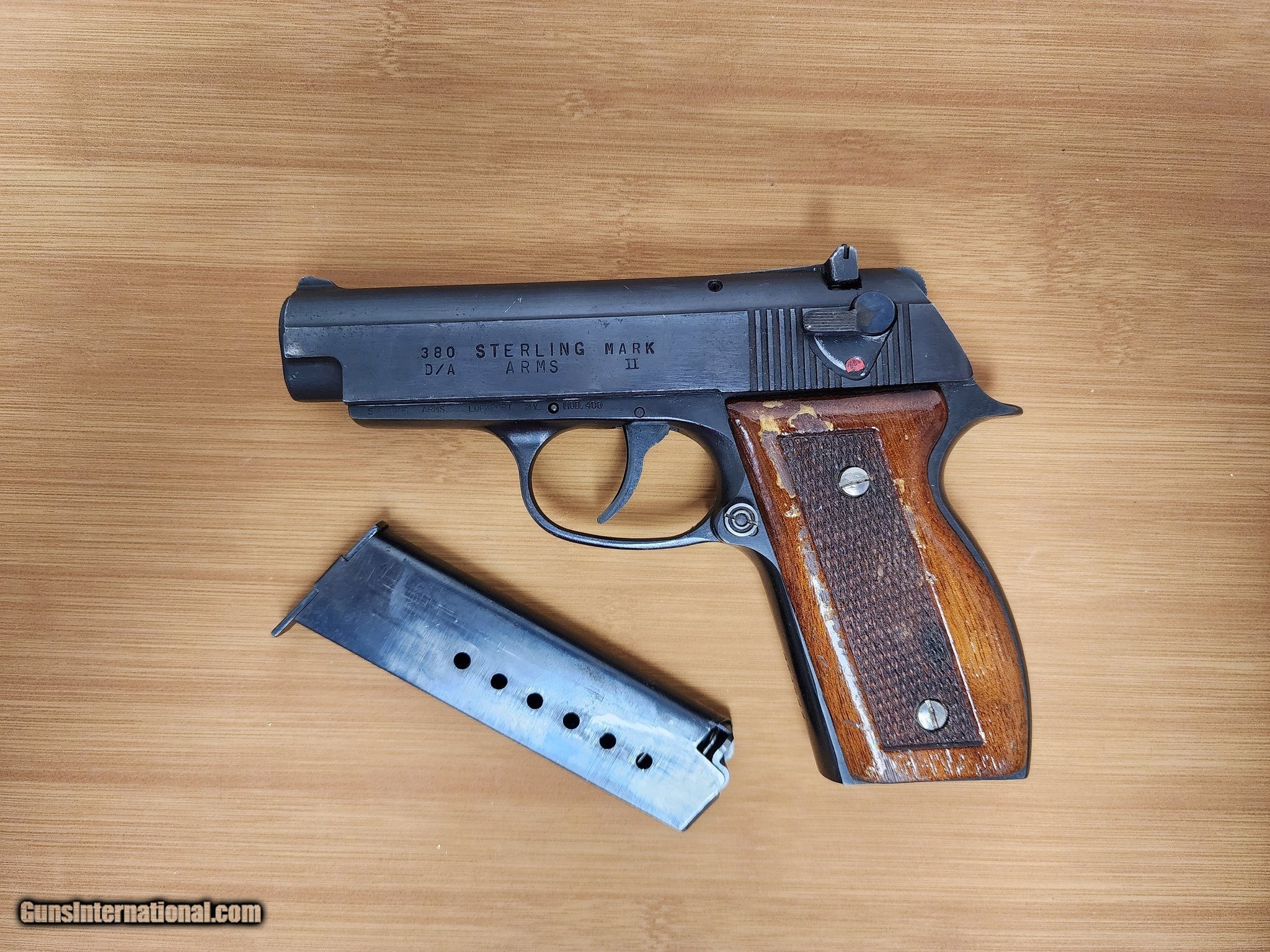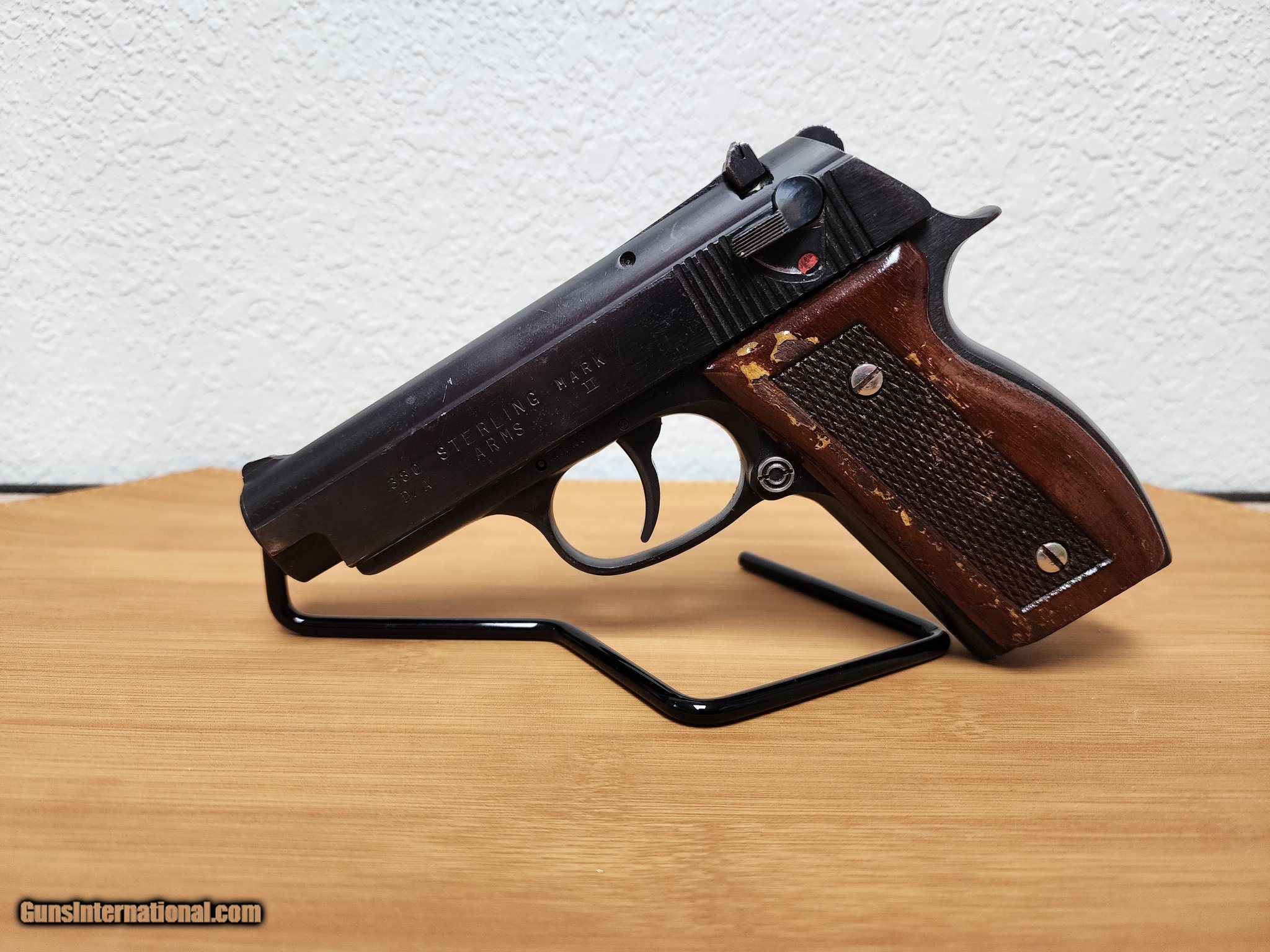 Description: Guns Listing ID: 1318803 Used Sterling Arms Model: 400 Mark II, signs of heavy use on grips, right grip broken off on rear upper corner, scratches and other signs of wear present. One magazine, no box. SOLD Manufacturer: STERLING Model: MODEL 400 MARK II Caliber Info: .380 ACP Condition: Used - Non-Certified Barrels: 3.5 BARREL Finish: BLUED |
