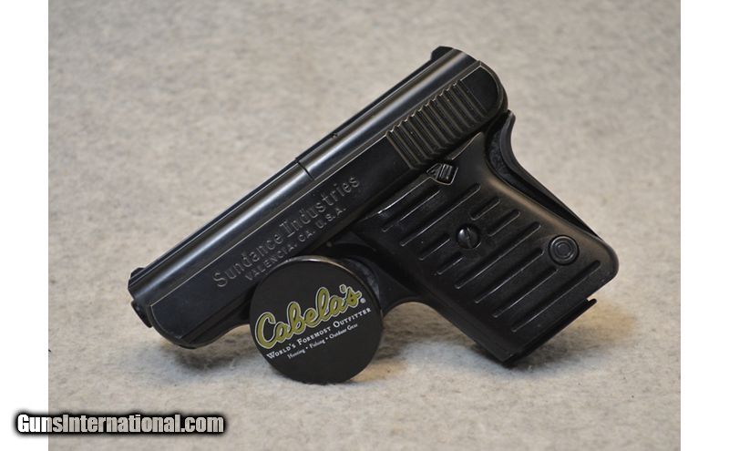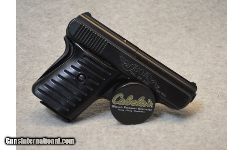 Description: Sundance Industries BOA .25 Cal. Semi-Auto pistol. There are small dents on the bottom of the grip from handling and use. The metal is in excellent condition only small handling marks. This pistol has a black frame with black slide, combat sights and one original magazine. Overall this pistol is in great condition. .25 ACP SOLD Barrels: 2.5 inches Item Location: Hazelwood, MO |