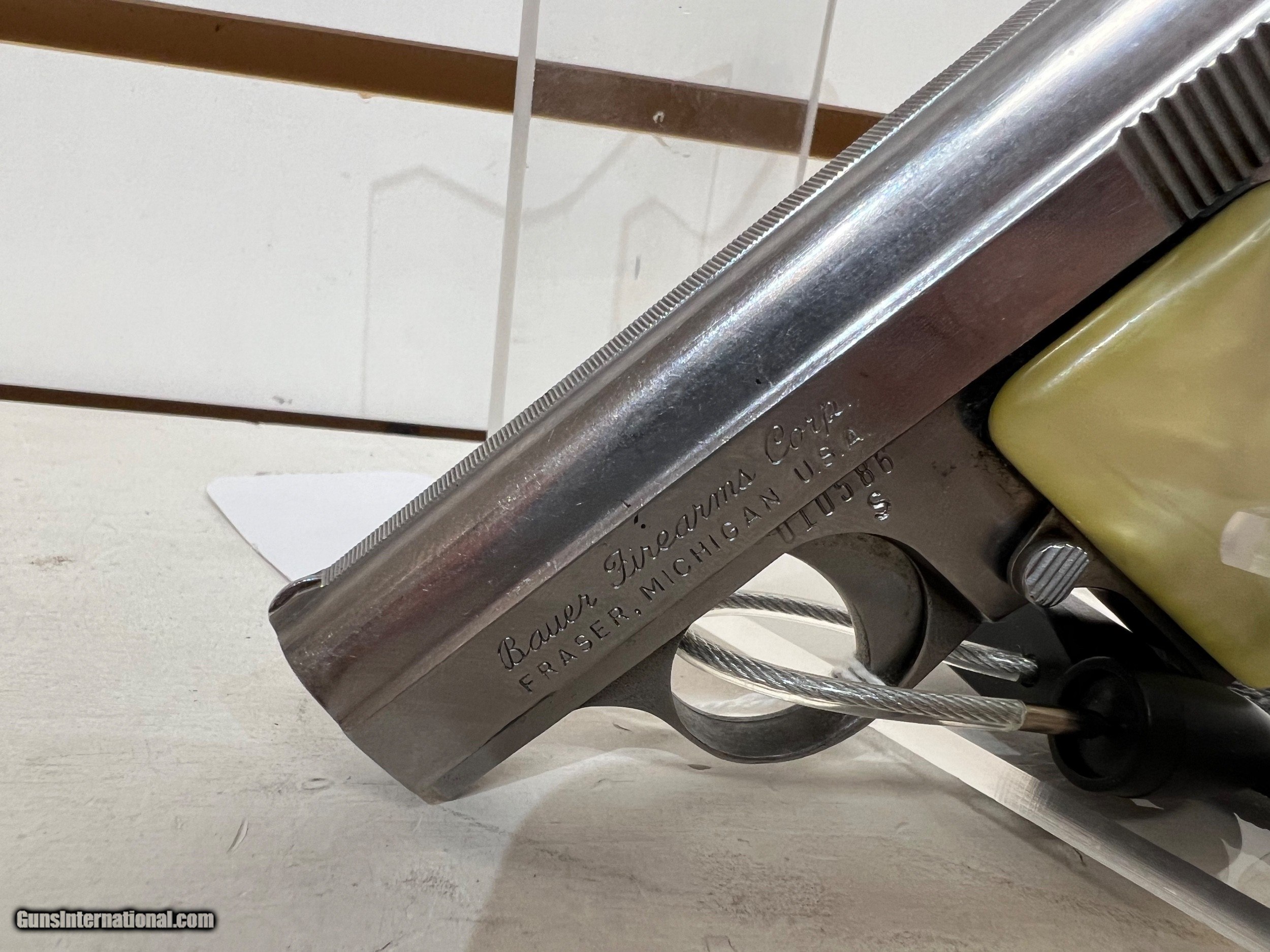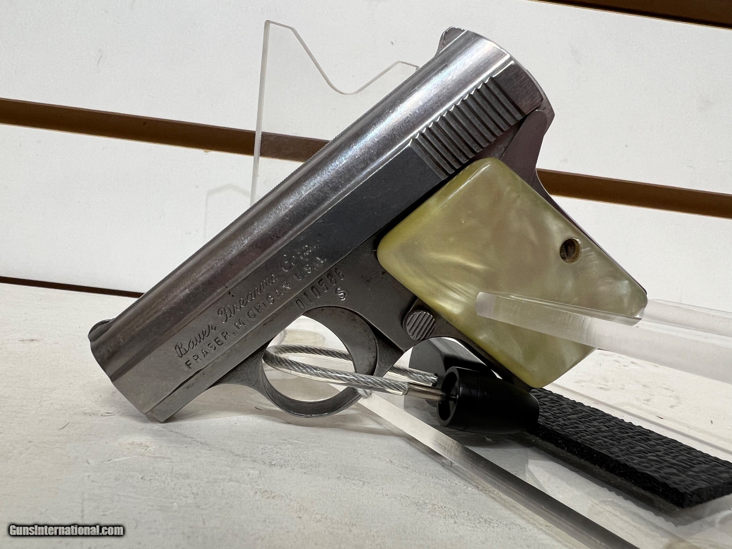 Description: Used Bauer 25acp 2" bbl 1 mag manual safety fair condition Buyer pays shipping Millers Gun Center Located in New Castle, Delaware "Home of TAX-Free shopping" No Credit Card Fees Send Gun international inquiry and then call 302-328-9747 to complete your purchase SOLD Serial Number: 010586S |