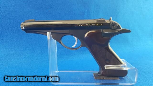 Description: Whitney Wolverine 22 LR, futuristic sci-fi appearance, 10 shot, 4 5/8 in barrel. Plastic grips, aluminum alloy frame and barrel shroud. MFG 1955 - 1962. 98% overall Add 3% for C/C S&H $25.00 SOLD Manufacturer: Whitney Firearms Model: Wolverine Serial Number: 28364 Caliber Info: 22lr |