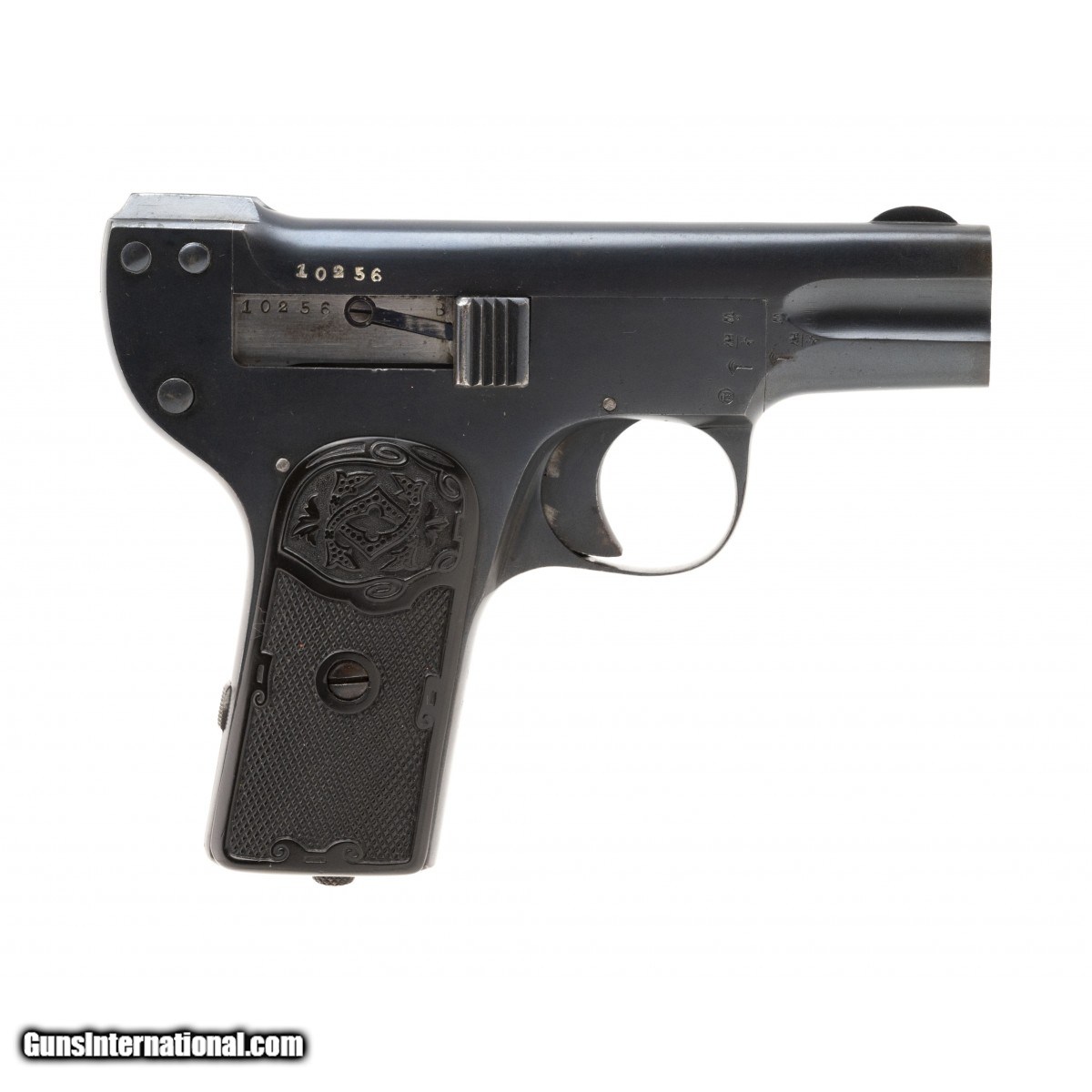 Description: " Semi-auto pocket pistol with 3"" barrel. The bore is excellent. The grips are perfect with an intricate Charles P.H. Clement logo manufactured in Liege, Belgium. The pistol has 99% of its original blue. The action works perfectly. Overall excellent condition pistol. SOLD Curio/Relic: Yes |