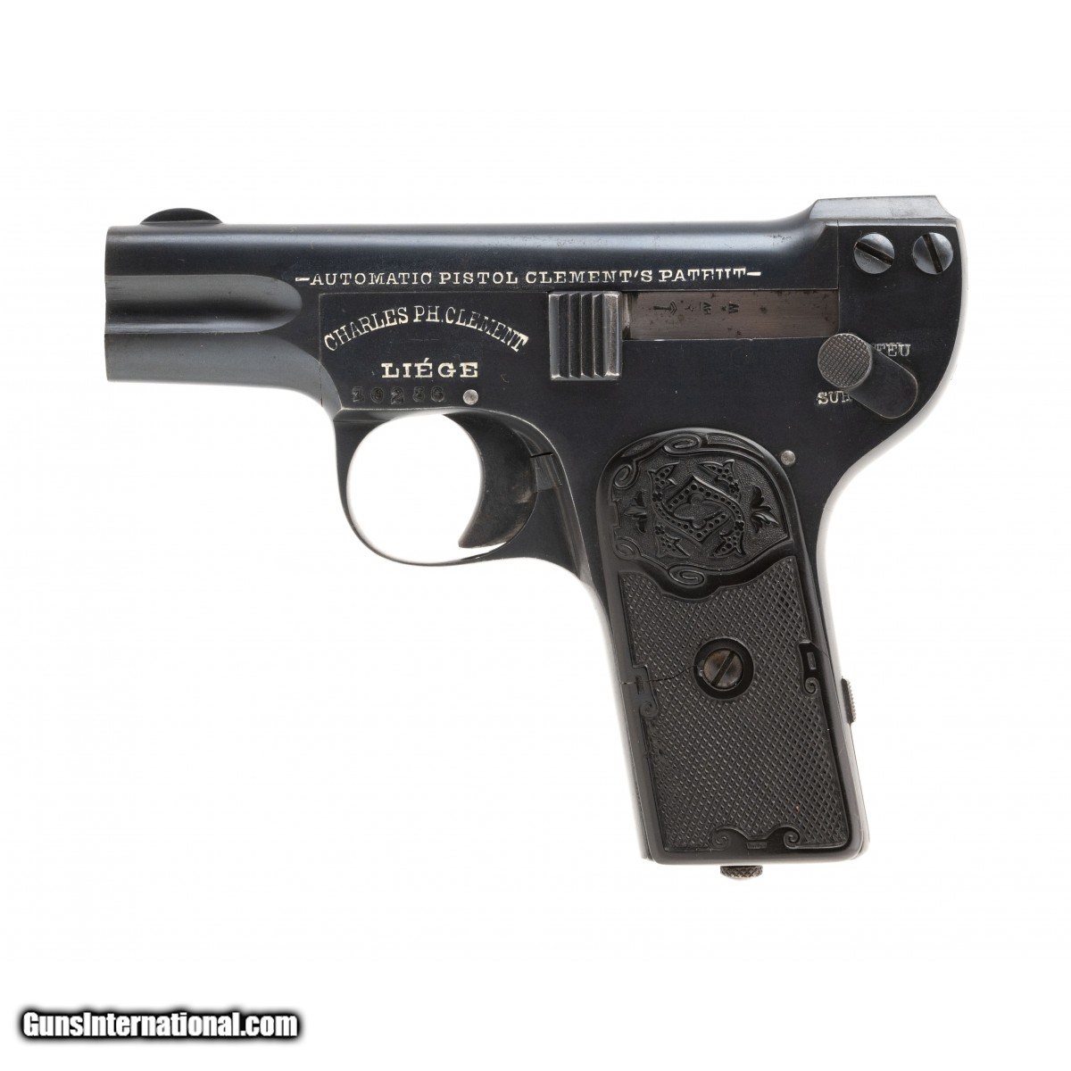 Semi-auto pocket pistol with 3"" barrel. The bore is excellent. The grips are perfect with an intricate Charles P.H. Clement logo manufactured in Liege, Belgium. The pistol has 99% of its original blue. The action works perfectly. Overall excellent condition pistol.