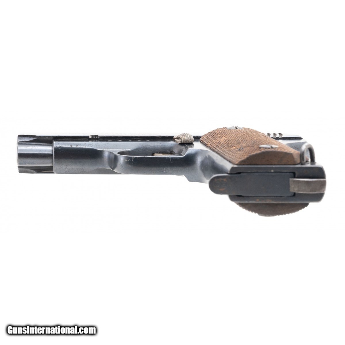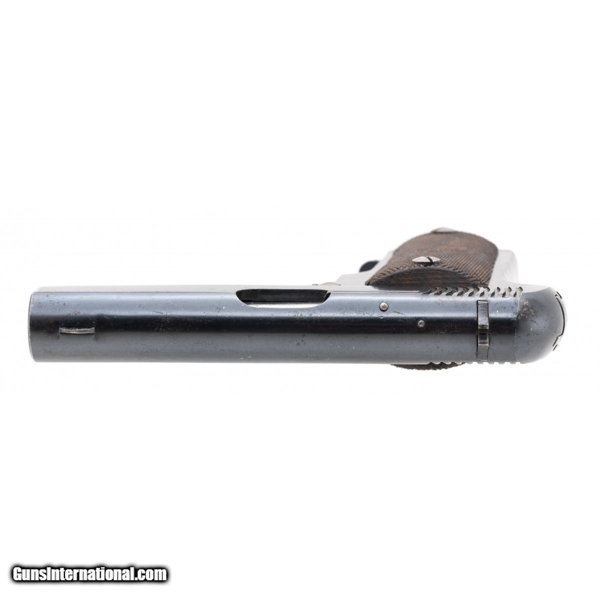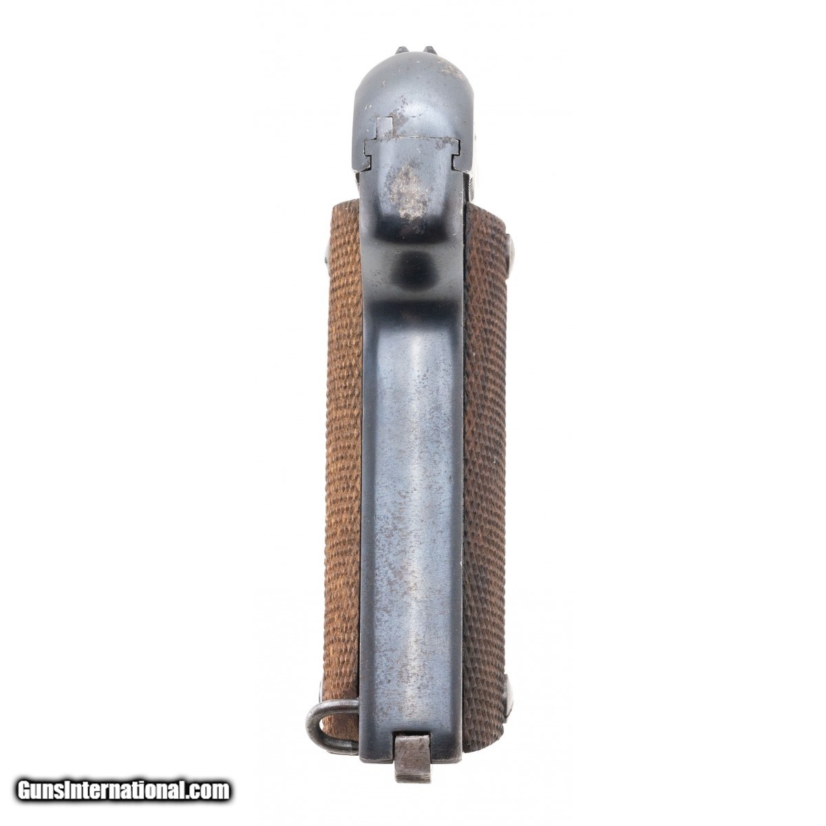 Description: " Serial No. 42188, circa 1916-1918, .32ACP, 3.25"" round barrel. 90% original blue remains with minor areas of surface oxidation visible, trigger is case colored. Bore is bright with frosting visible in the grooves. Grips show light handling wear, action functions correctly. Slide is marked ""765-1915-Automatic Pistol De Guerre/Paramount-CAL-32"". It is possible this pistol saw service in WWI. SOLD |