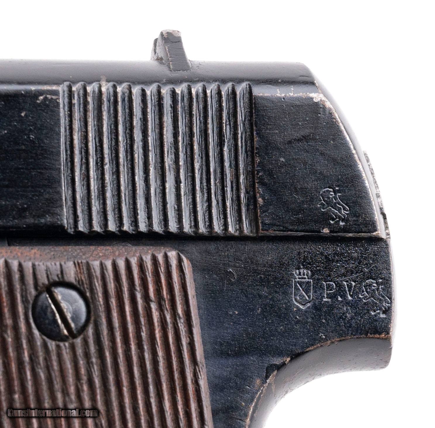 Description: "Serial No. 67639, circa early 1900’s, 7,65mm, 3 ¼" round barrel. Bore is good with light frosting visible in the grooves, rifling remains fair. Pistol is been refinished with a black paint type of material. Action functions correctly. Price: $399.95 Contact Seller |